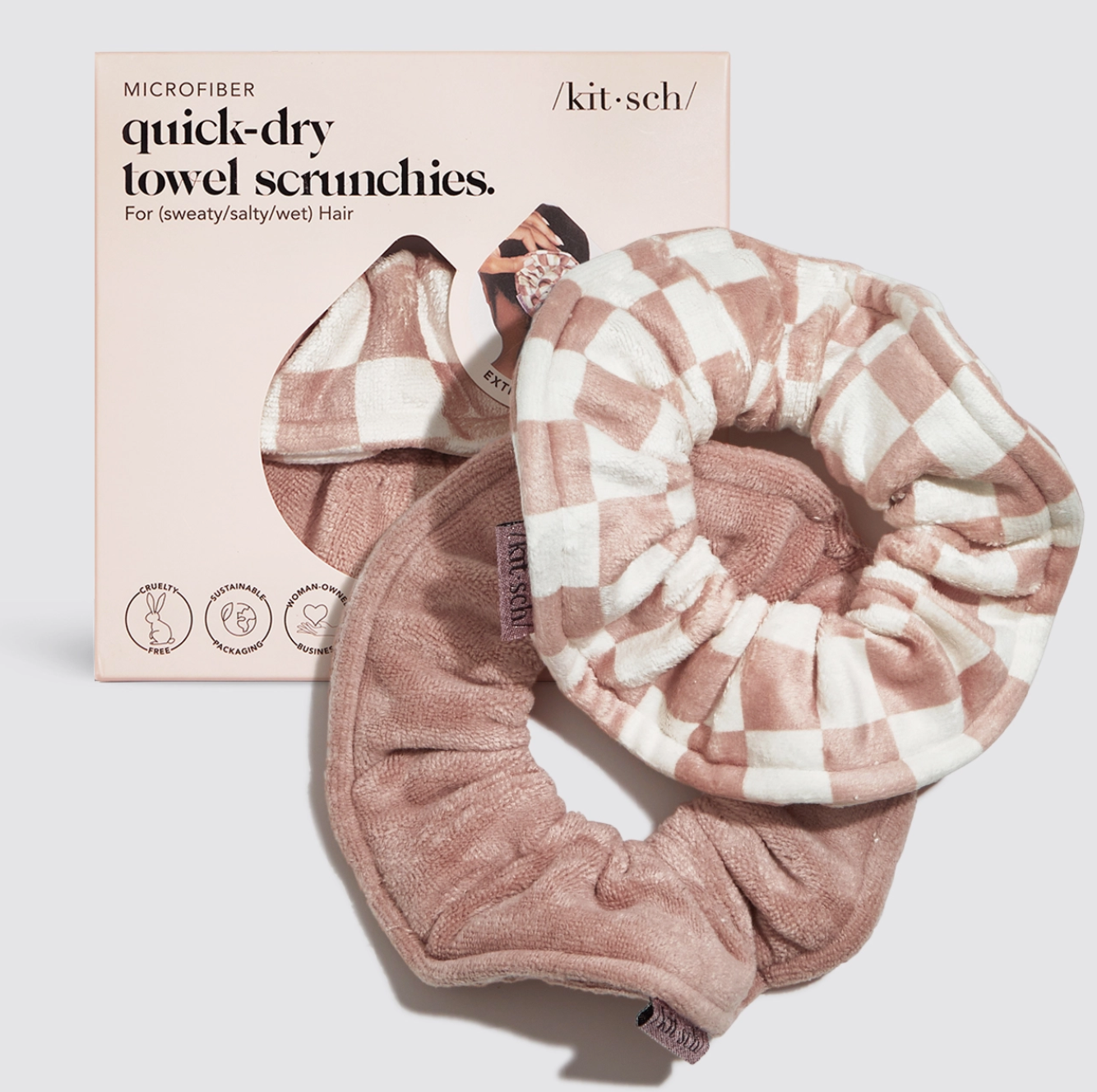 Microfiber Quick-Dry Towel Scrunchie 2PC- Terracotta Checker