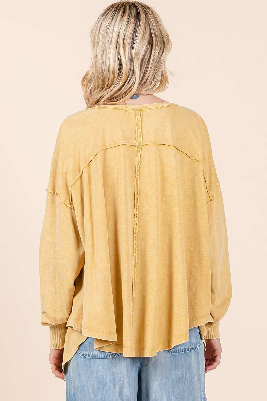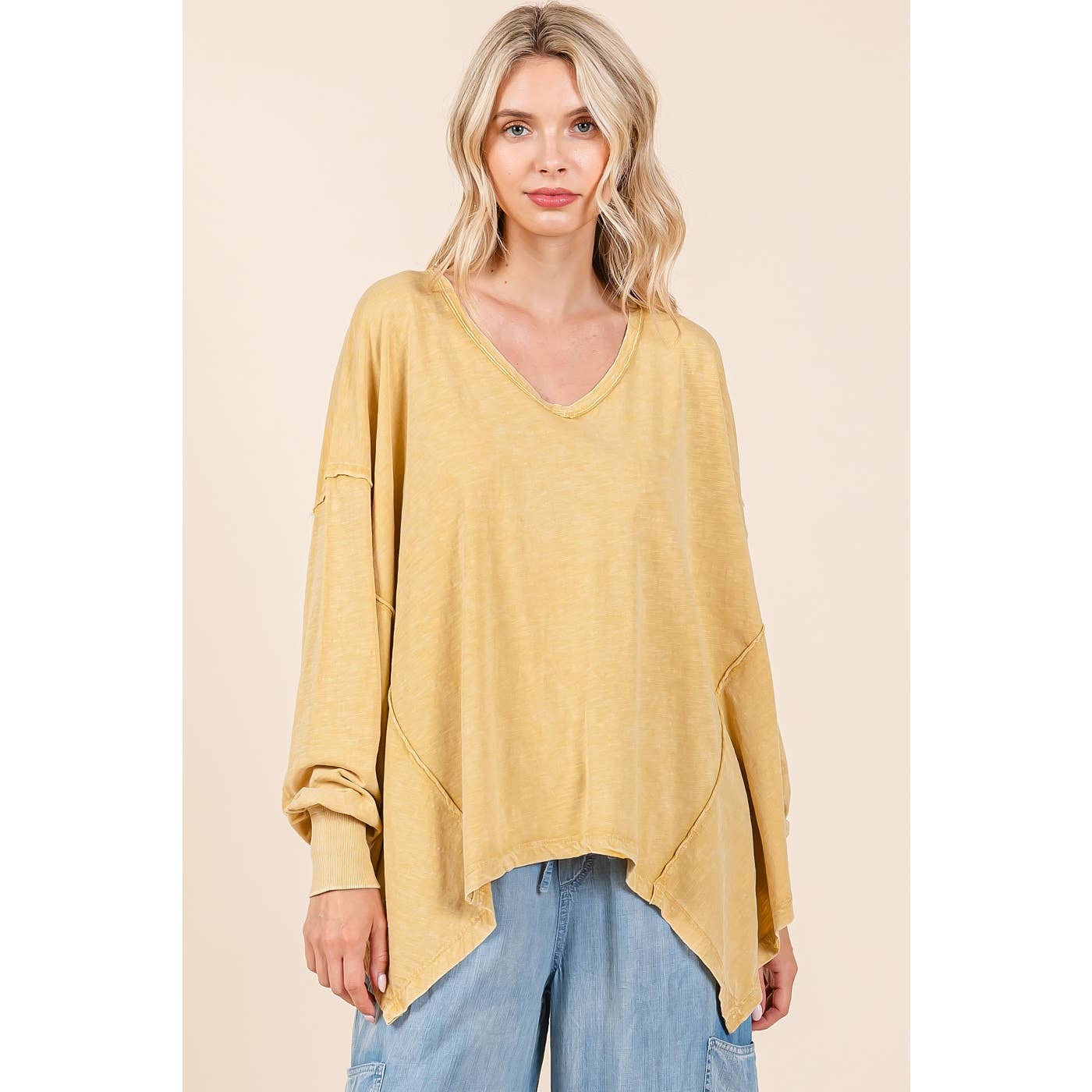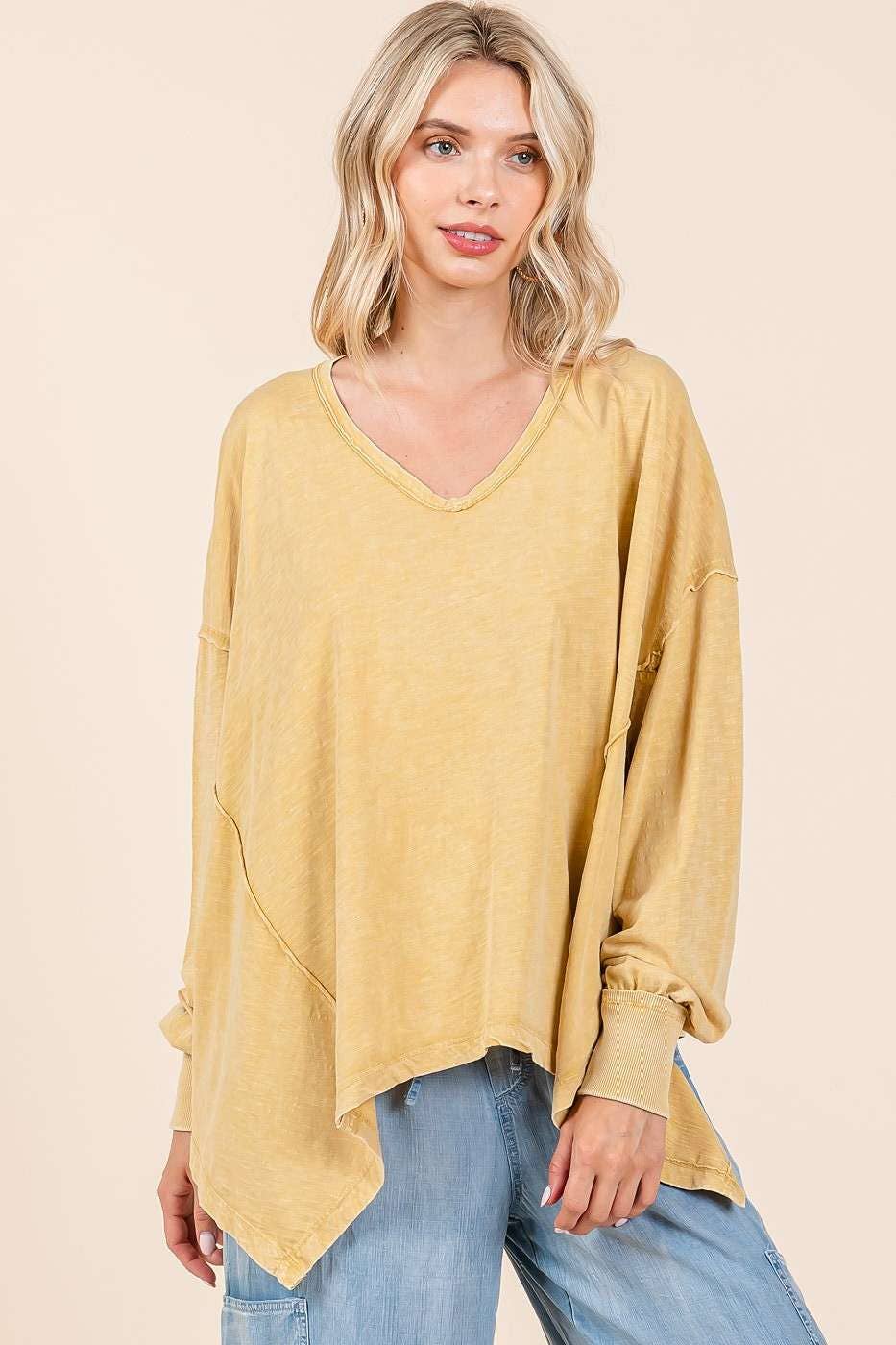 MINERAL WASH V-NECK LONG SLEEVE OVERSIZED TOP