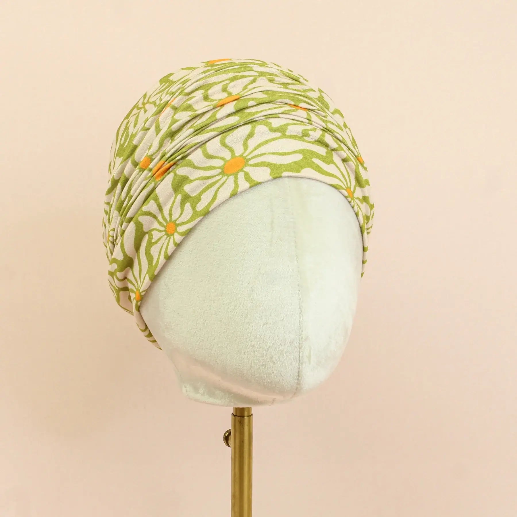 This headband features green retro hippie flowers!