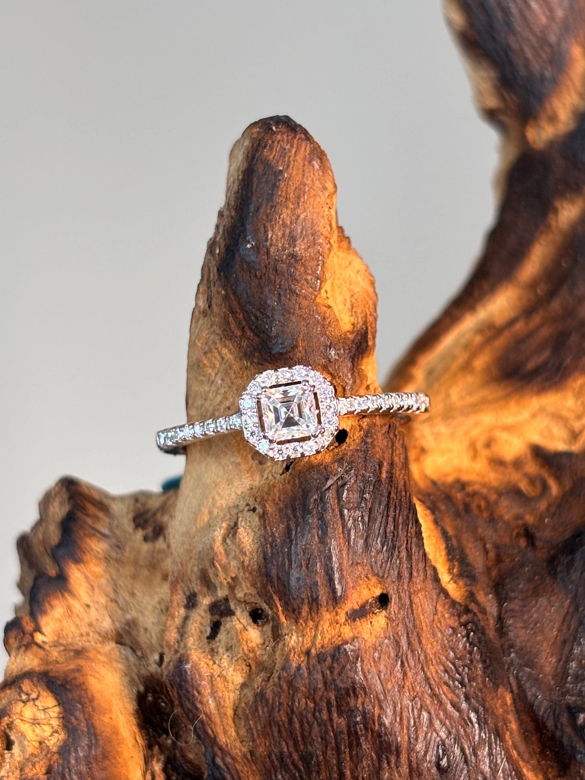 Moissanite Princess Center with Halo & Multi-Stone Sides Ring