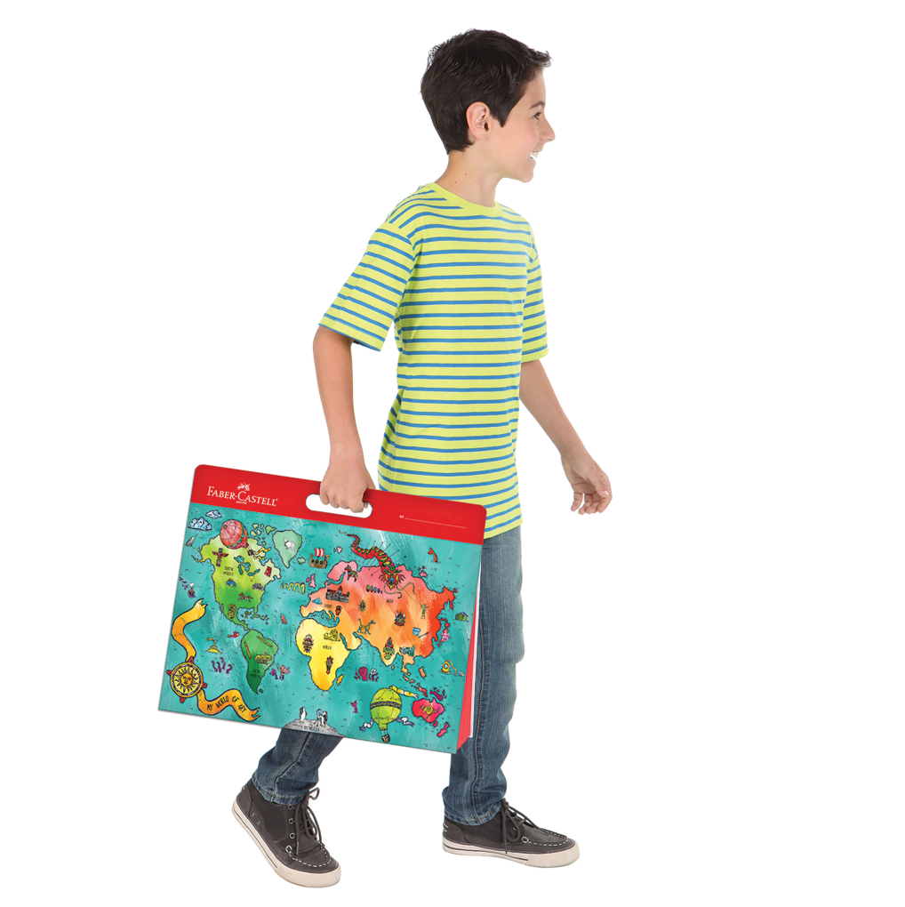Organize and store your artwork, school projects and keepsakes with Faber-Castell My World Art Portfolio! The accordion style art portfolio for kids measures 15" x 19" with 8 expandable pockets and a place to add your name for personalization. The My World of Art Portfolio is great for holding large pieces of artwork that are sized up to 12" x 18". Save your keepsake art projects from your young artist for years to come in this accordion style expandable folder. Gender neutral design and colorful world of art graphics makes this ideal for girls and boys.