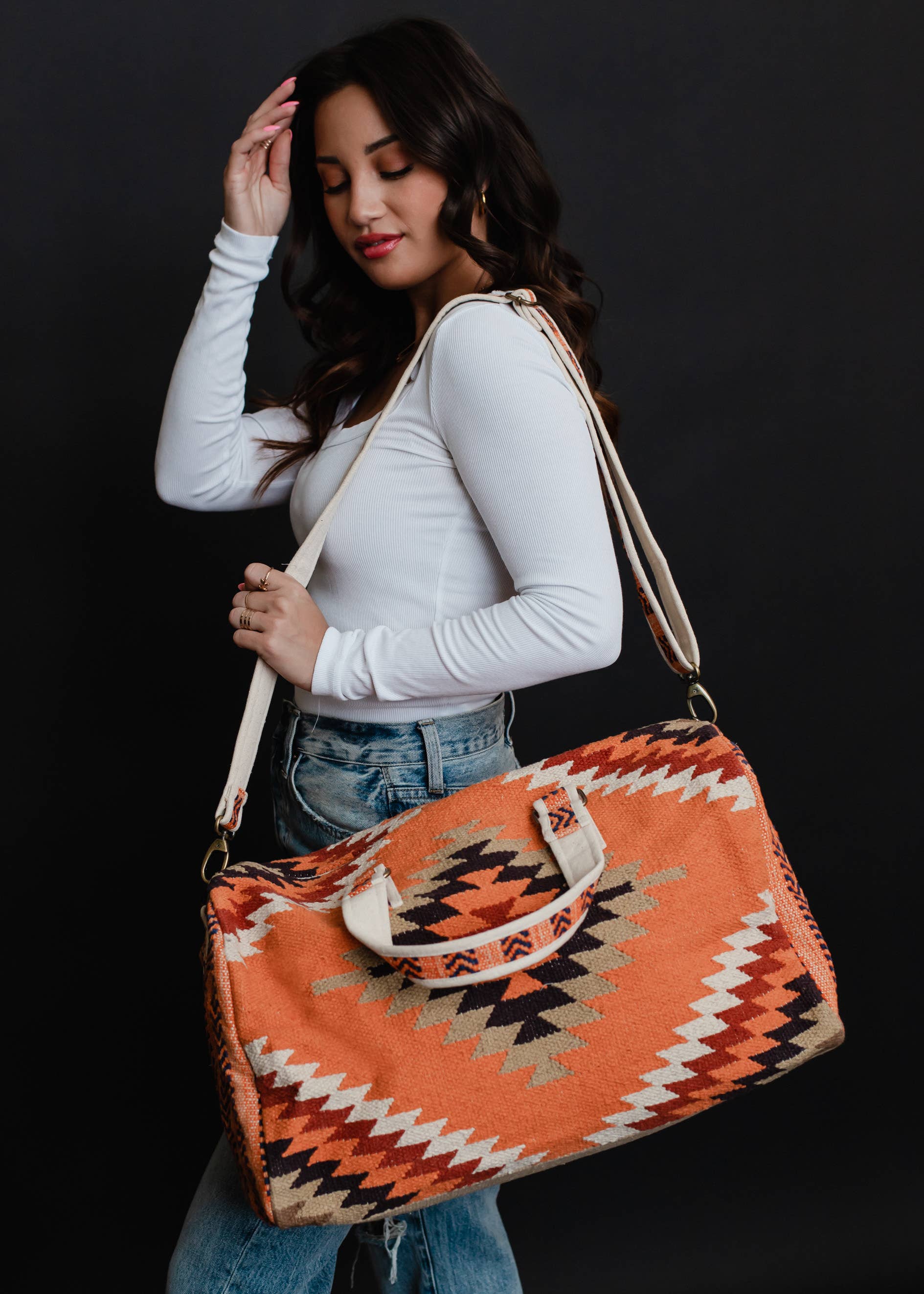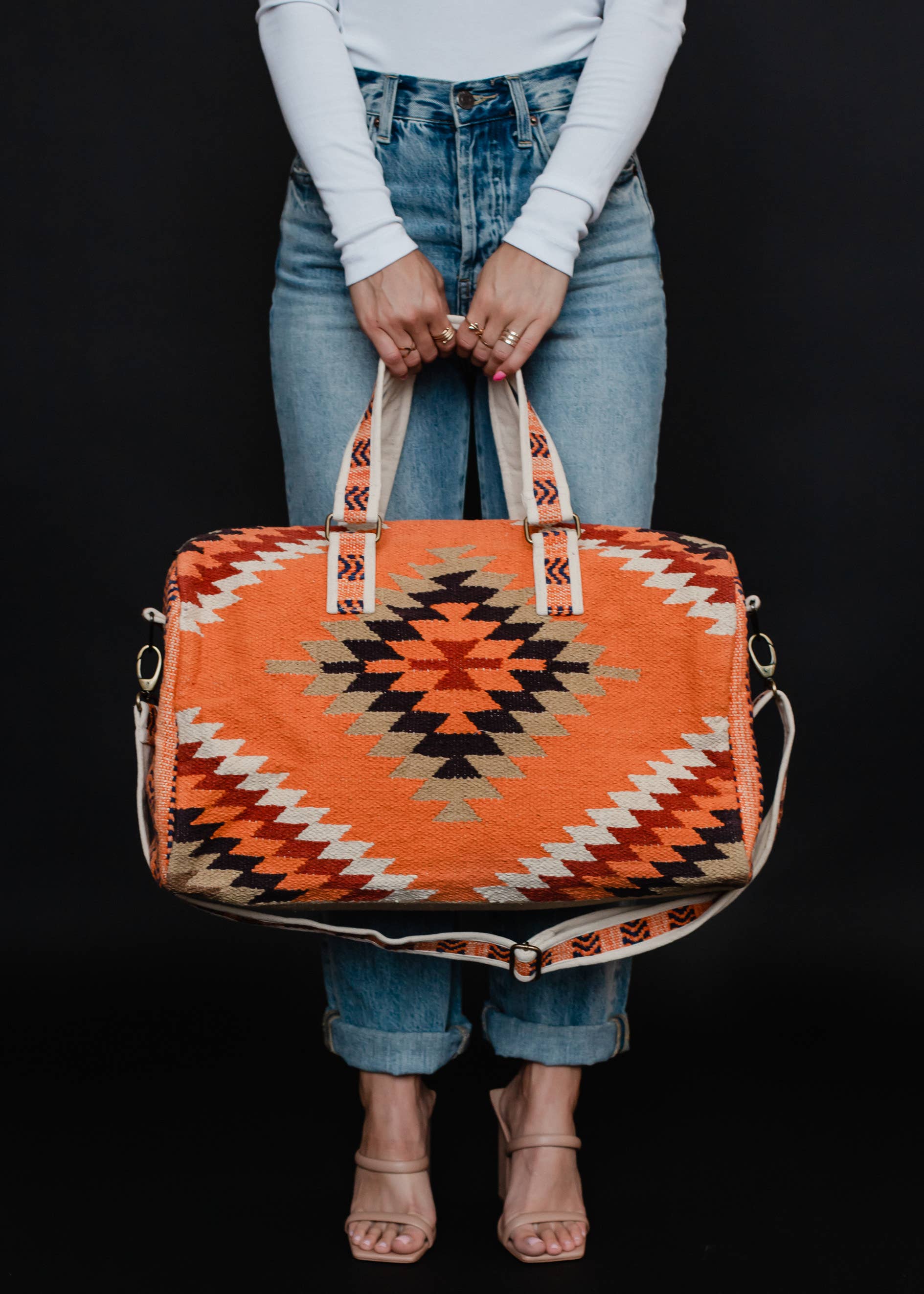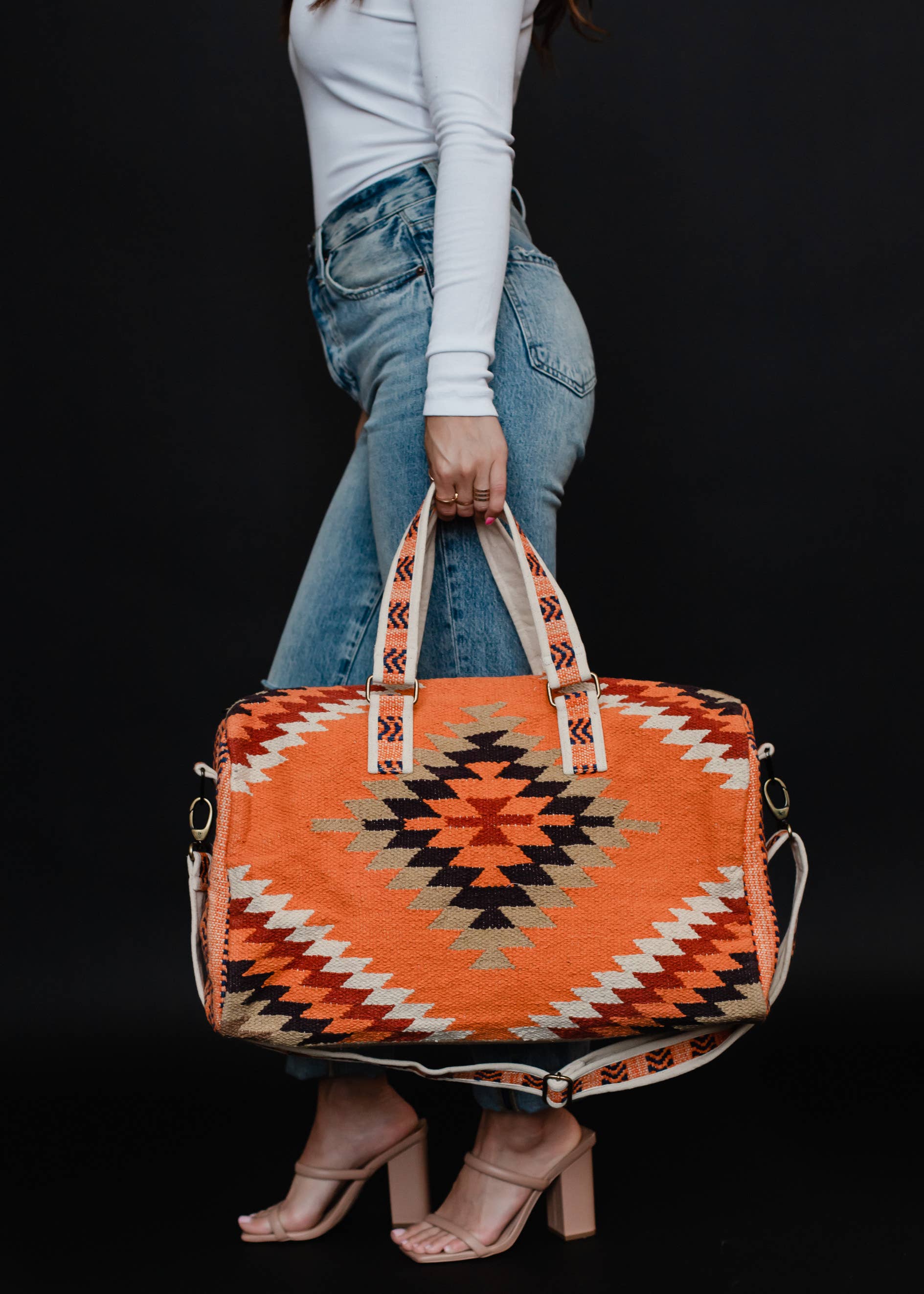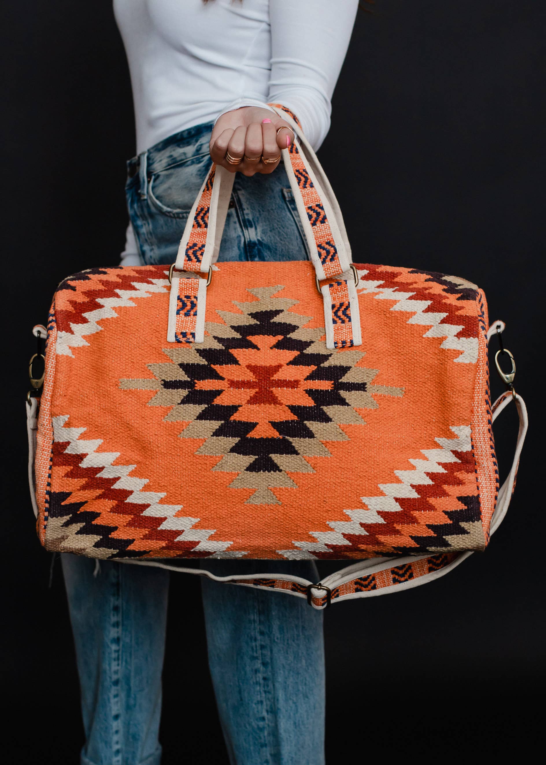 Orange, White & Red Aztec Duffel