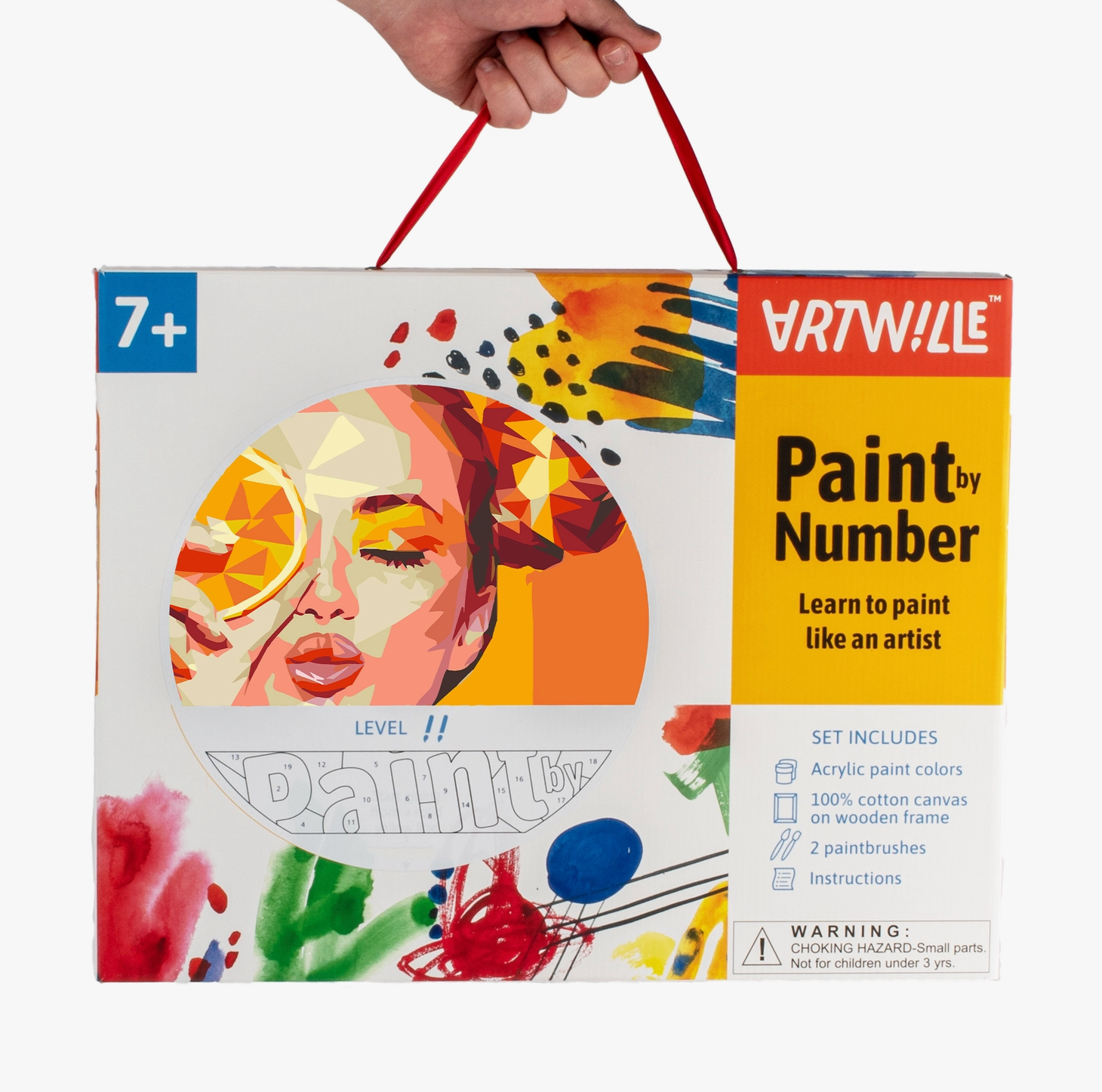Painting by numbers is a game in which everyone can make a piece of art. The rules are simple: fill in the numbered areas with the appropriate colors. Select zone you're planning to paint and start painting from the largest to the smallest areas. Draw anywhere! You don't need an easel or other extras to do this. Numbers and outlines are printed clearly, so you don’t have to look at the picture under a magnifying glass. Acrylic paints are odourless and dry quickly. If you went beyond the outline - it's not a problem! Just apply the appropriate colour on top. The game is designed for children older than 7 years.
