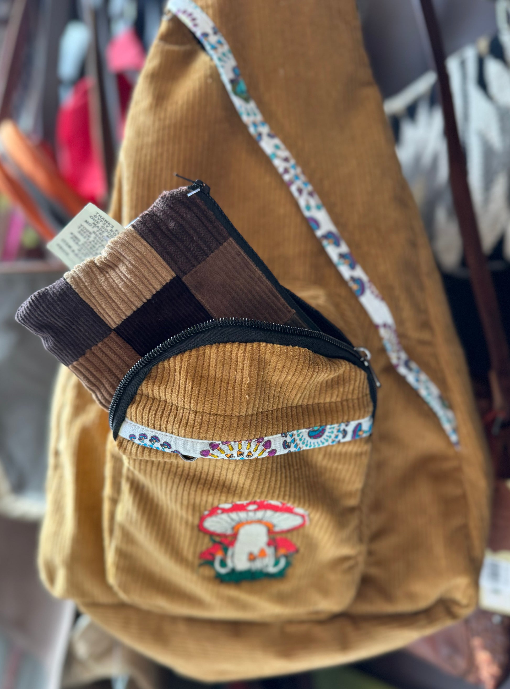 The corduroy fabric adds a soft and tactile feel to it, while the patchwork design channels those free-spirited, hippie vibes. It's a small but essential piece of boho flair for your everyday adventures.