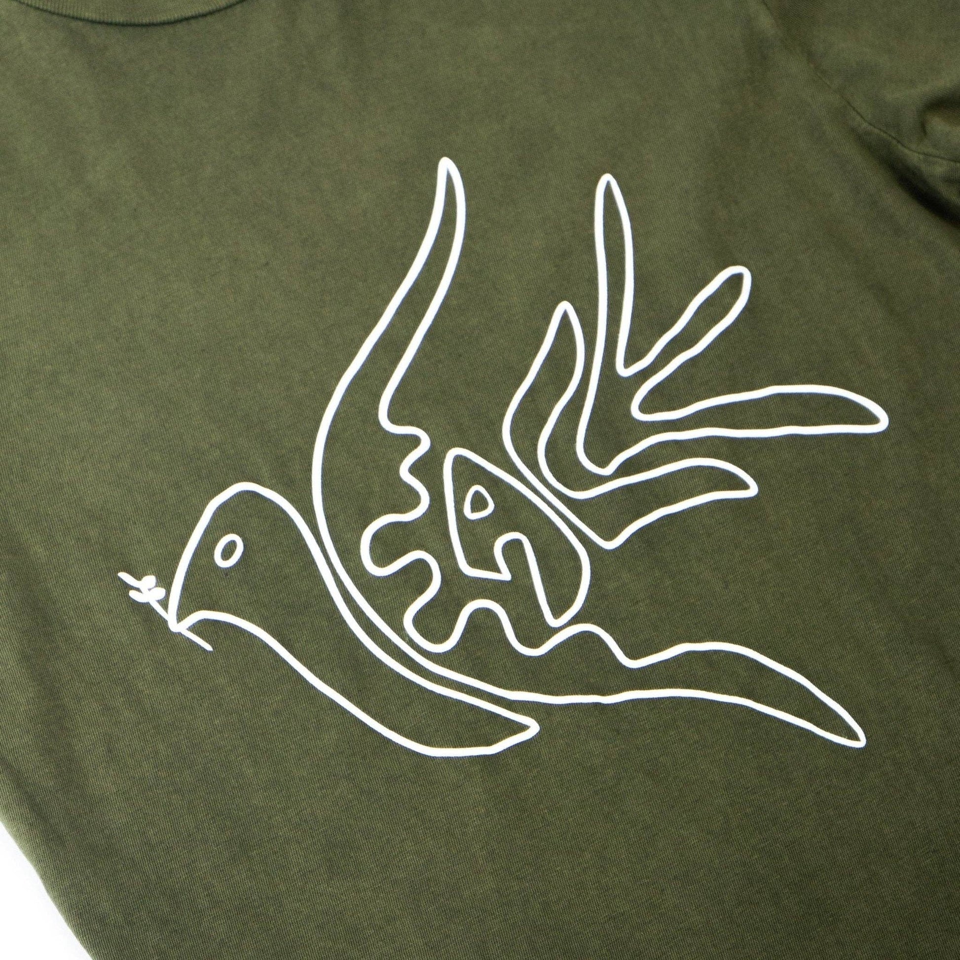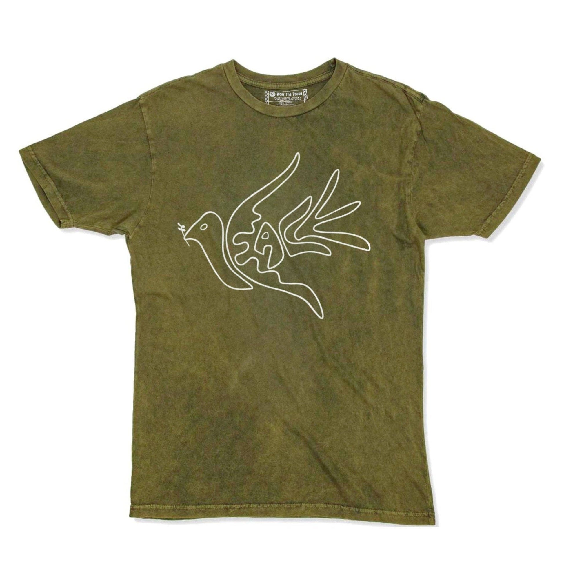 Peace Bird Vintage Tee Product Details * Fit: Relaxed, True to size * Sizing: Men's * Material: 100% Cotton * Wash Care: Machine wash cold, tumble dry low * Designed and Screen-printed in the U.S - Olive