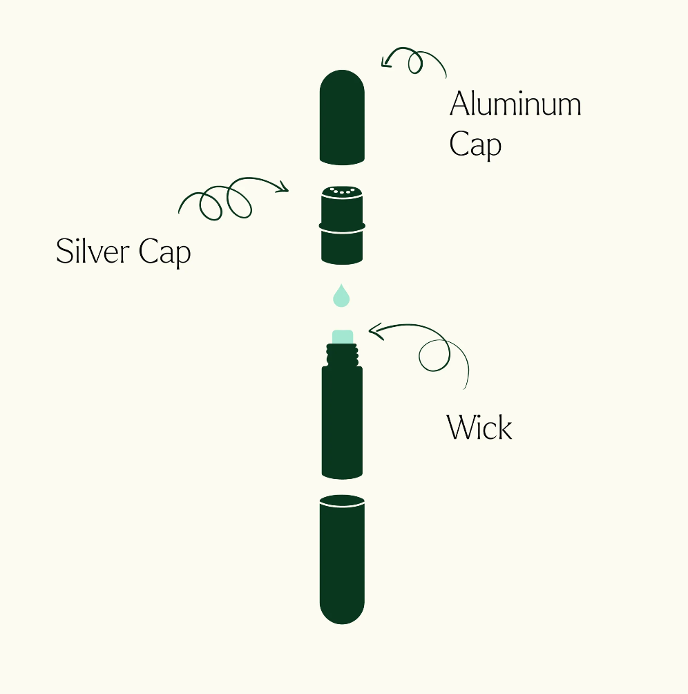 Simply fill the inner bottle with some of your favorite oils or blends, replace the wick, and have an inhaler for on the go!
