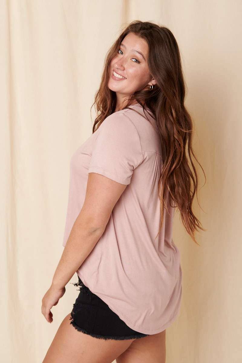 *THIS IS A PLUS SIZE* - SCOOP NECK - GATHERED BACK DETAIL - CURVED HEMLINE - BAMBOO