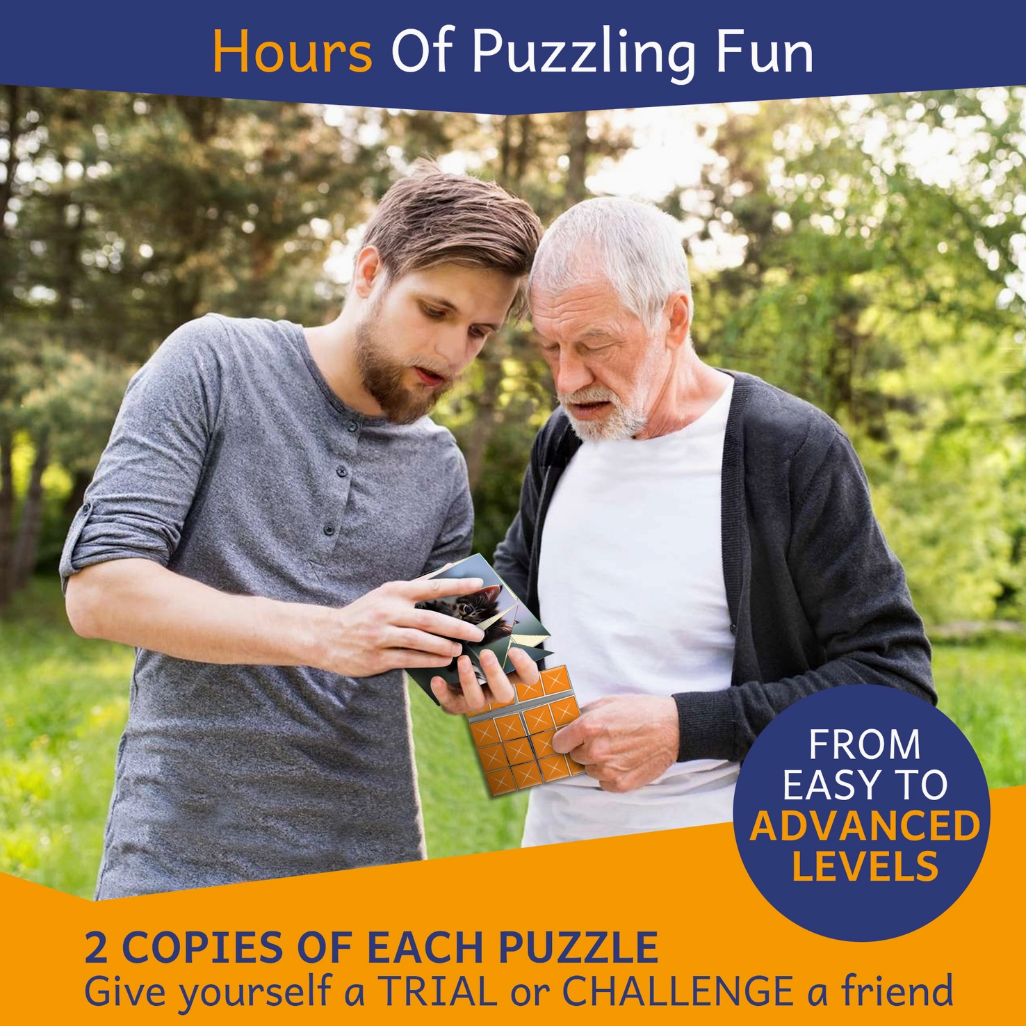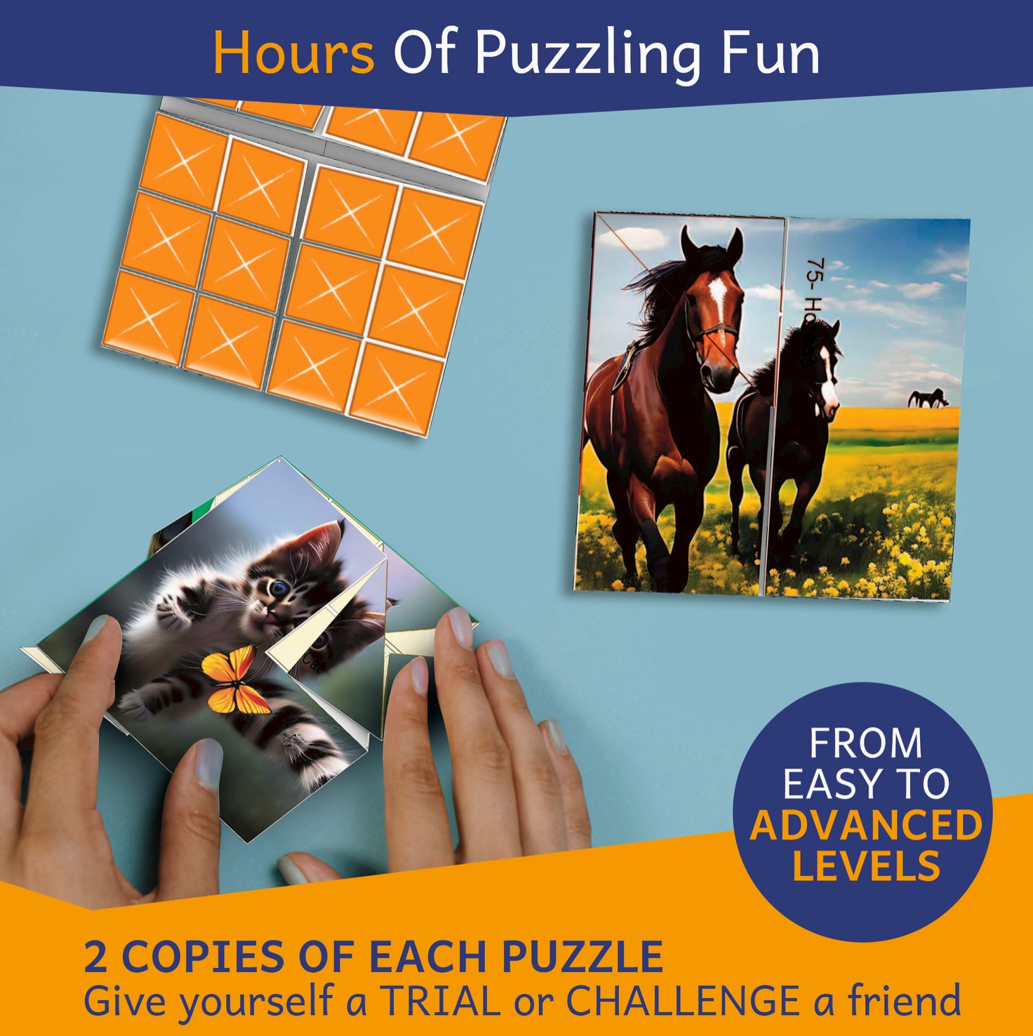 If you love origami and you love solving puzzles, we've got just the game for you. !!! An Origami Puzzle !!!! What's not to love about origami? Whether you're spending a quiet night in or whiling away a lazy afternoon, there's just something so soothing about being able to create a thing of beauty with your hands. Puzzles are addictive in a similar way – you can take your sweet time, and your methods don't have to be perfect, but at the end of the day, you get all the satisfaction of a job well done. If you're ready for a challenge, dive into the captivating world of the Puzzlefold Origami Puzzle Game! This puzzle book contains origami paper 8x8 paper folding challenge that are all about unlocking the exquisite nature designs hidden in each sheet of paper. Fold horizontally, vertically, and diagonally until you can combine all the vivid-color picture pieces into one vibrant whole. The end result of each puzzle is a stunning perfect square you can show off to all your friends or display. 100 puzzles - 200 sheets