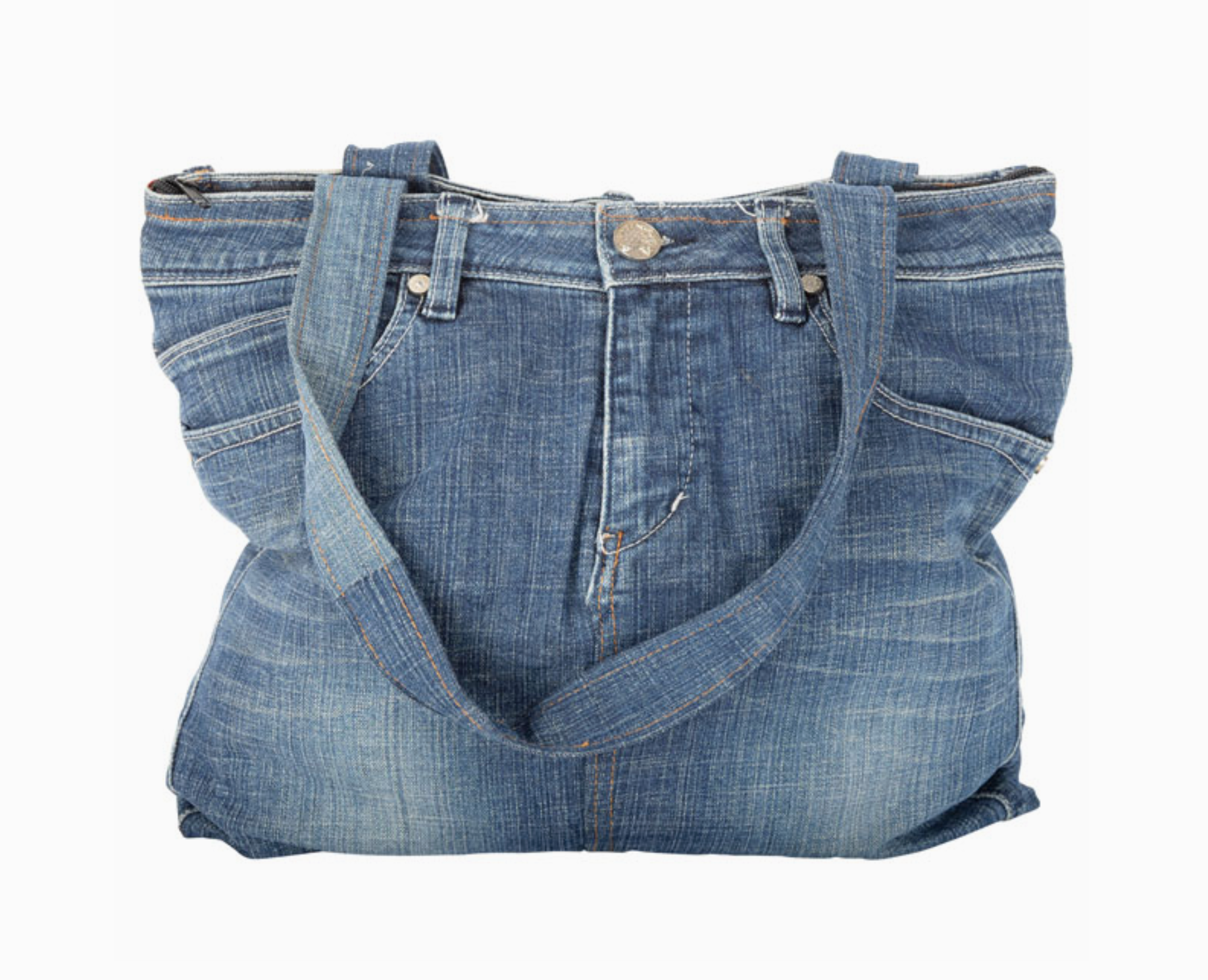 This tote bag, measuring 15 inches by 14 inches with a 2-inch depth, is not only stylish but also environmentally friendly, being crafted from recycled jeans. Perfect for the modern woman, it easily transitions from a day at work to an evening out, offering enough space to carry your essentials with ease. Manufactured locally in the USA, this tote bag reflects our commitment to promoting America’s economy and our own artisans. Inspired by our global exposure, this bag is a blend of innovative design and practicality. Whether you're off to work, shopping, or on a casual outing, this bag will be your perfect companion.