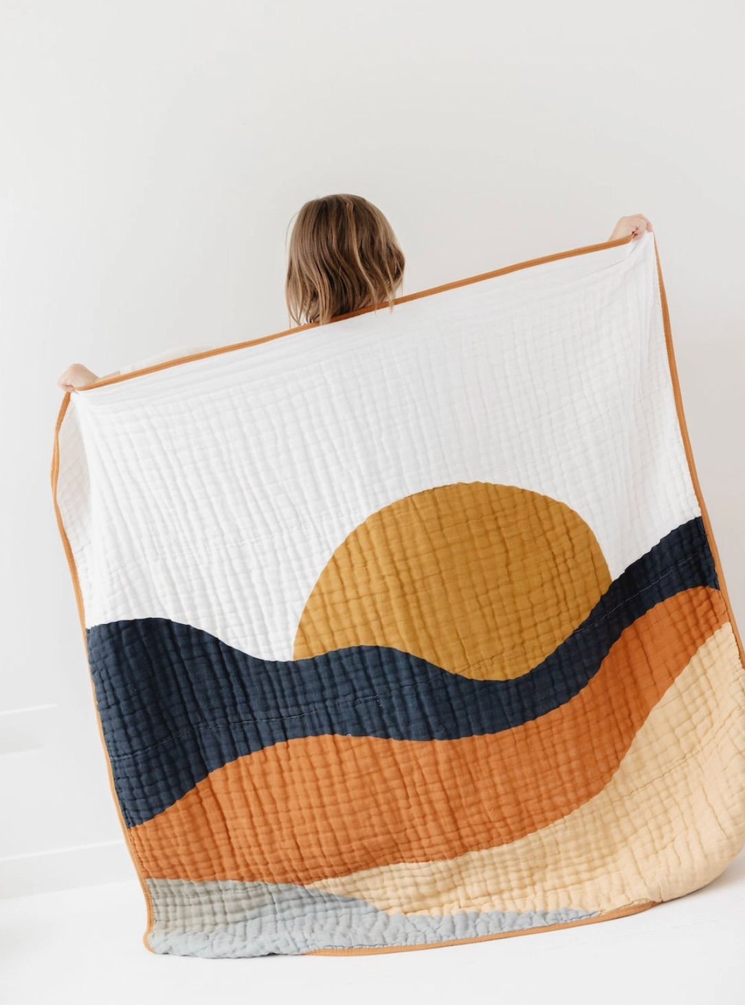 Four layers of muslin come together in a breathable but warm quilt perfect for babies, toddlers, cribs, play time, picnics, and pictures. 47x47 inches. Made of 100% cotton muslin, and only gets softer with time. Never bleached. Machine washable.
