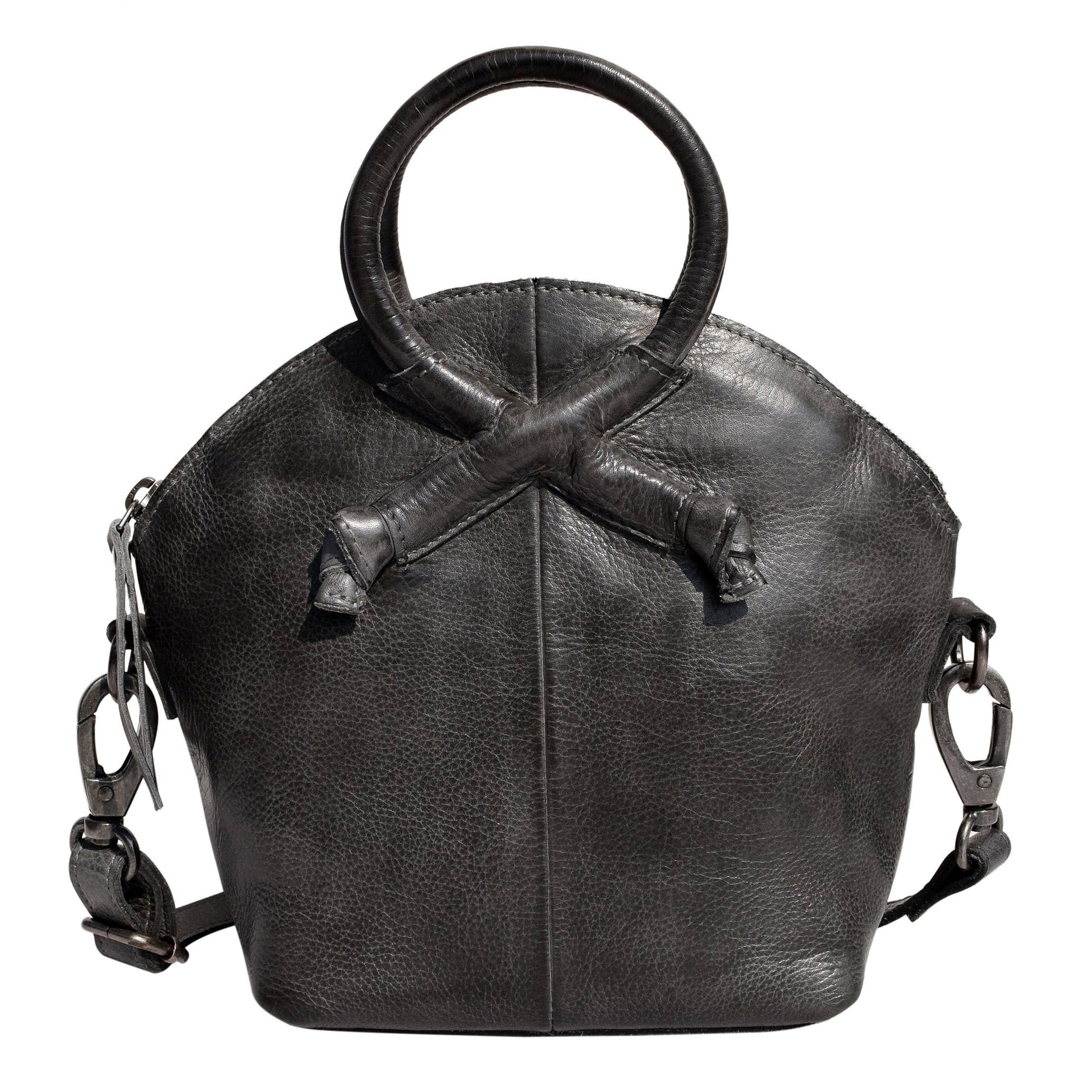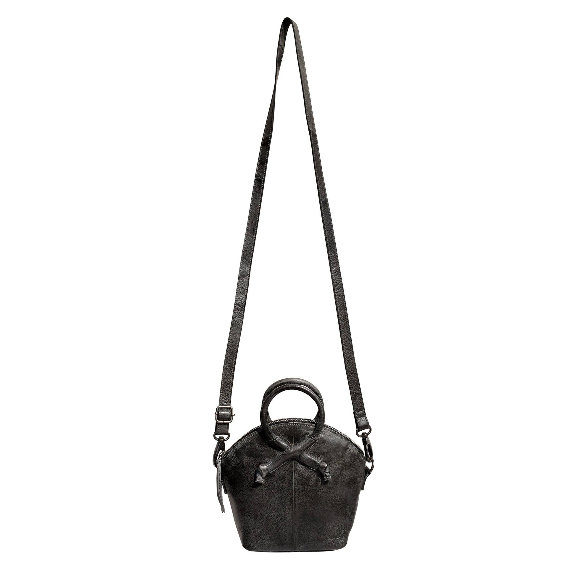 8”H x 3”D x 7.5”L - Softly rounded top handle crossbody - Exterior drop-in hidden cell phone pocket with magnetic closure - Interior back wall zip + slip pocket - Removable/adjustable shoulder strap