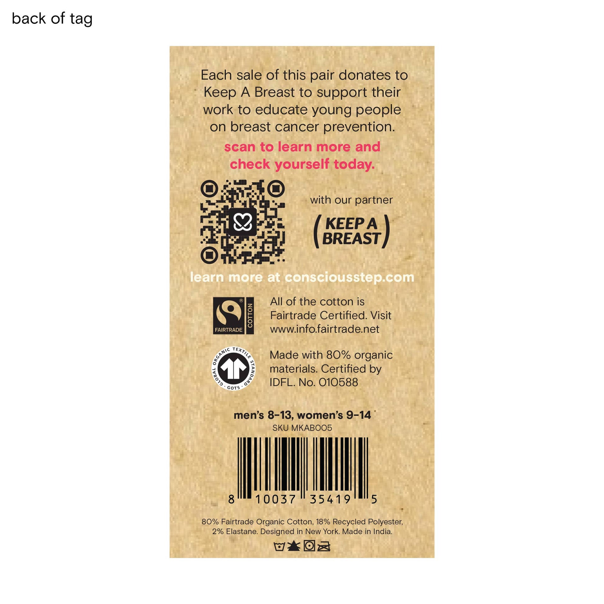 No matter the shape, size, or if you have one, two, or none at all, your boobies are unique and perfect as they are! While no two are the same, they all deserve the same level of love and care. Self-exams are a form of self care that is crucial to early breast cancer detection, so each pair of these socks that support self-checks donates to Keep A Breast to support their work educating young people on breast cancer prevention.