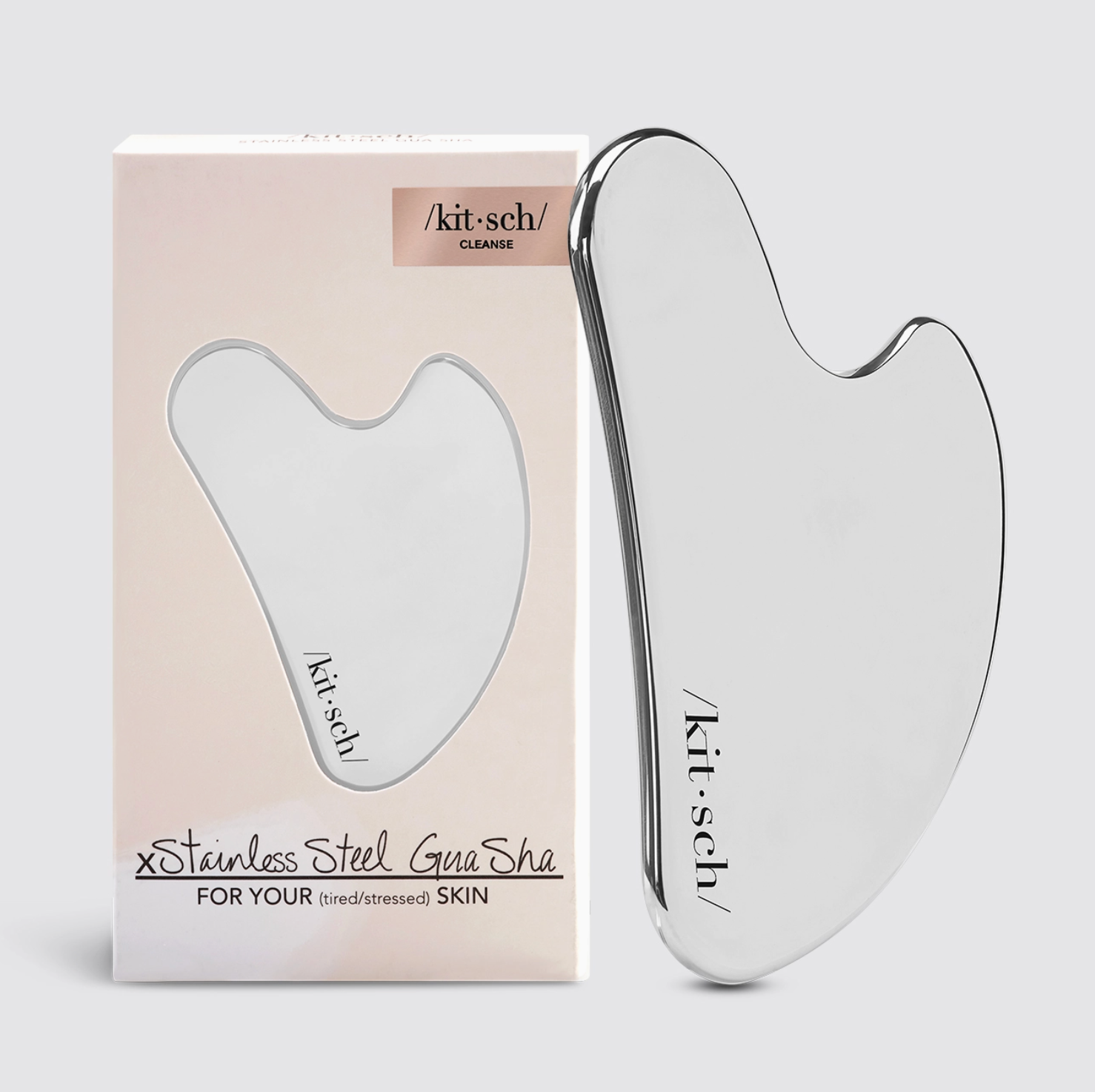 Kitsch Stainless Steel Gua Sha Tool may help massage the skin and may help promote blood circulation and lymphatic drainage for healthier, radiant skin. The perfect way to soothe tired muscles and stimulate pressure points, relieving stress & tension. Hygienic stainless steel construction is non-porous helping prevent bacteria build-up making it easy to clean & sanitize