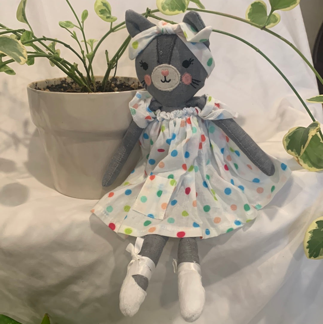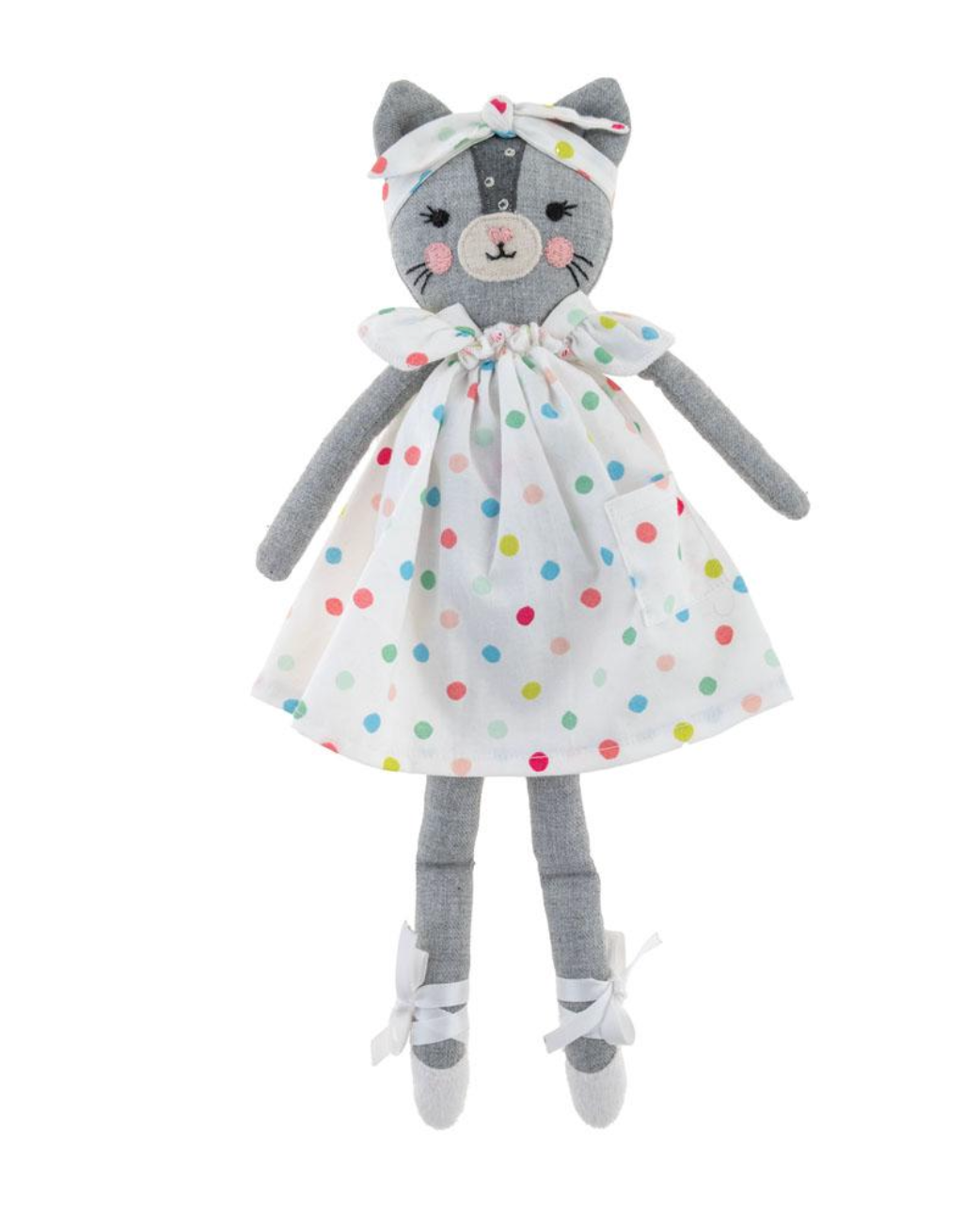 Charming knit doll features embroidered features, dance-themed dresses, and long legs with pointe shoes. Suitable from birth.