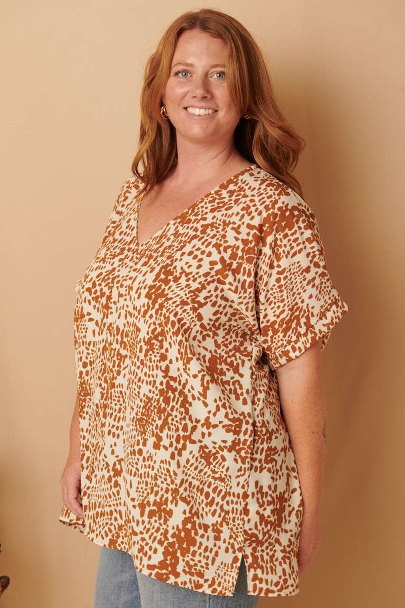 ABSTRACT PRINT DOLMAN SLEEVE TOP (Plus)