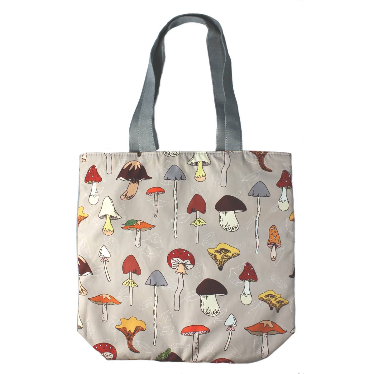 Make a bold statement with our tan tote bag featuring a striking toadstool variety pattern. This eye-catching design features a fun array of whimsical mushroom varieties. With its spacious interior and sturdy construction, this tote bag is as functional as it is stylish. Carry your essentials in style and let the playful mushroom print reflect your unique personality and love for nature.