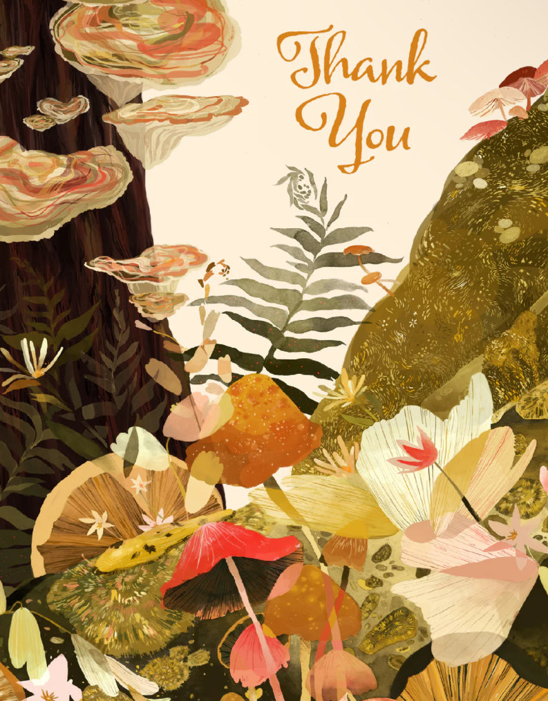 This thank you card is printed in full color on sturdy 100% post-consumer recycled paper. Each Waterknot greeting card comes with a 100% recycled Kraft envelope. The interior of the card is blank leaving plenty of room to pen your own personal message.