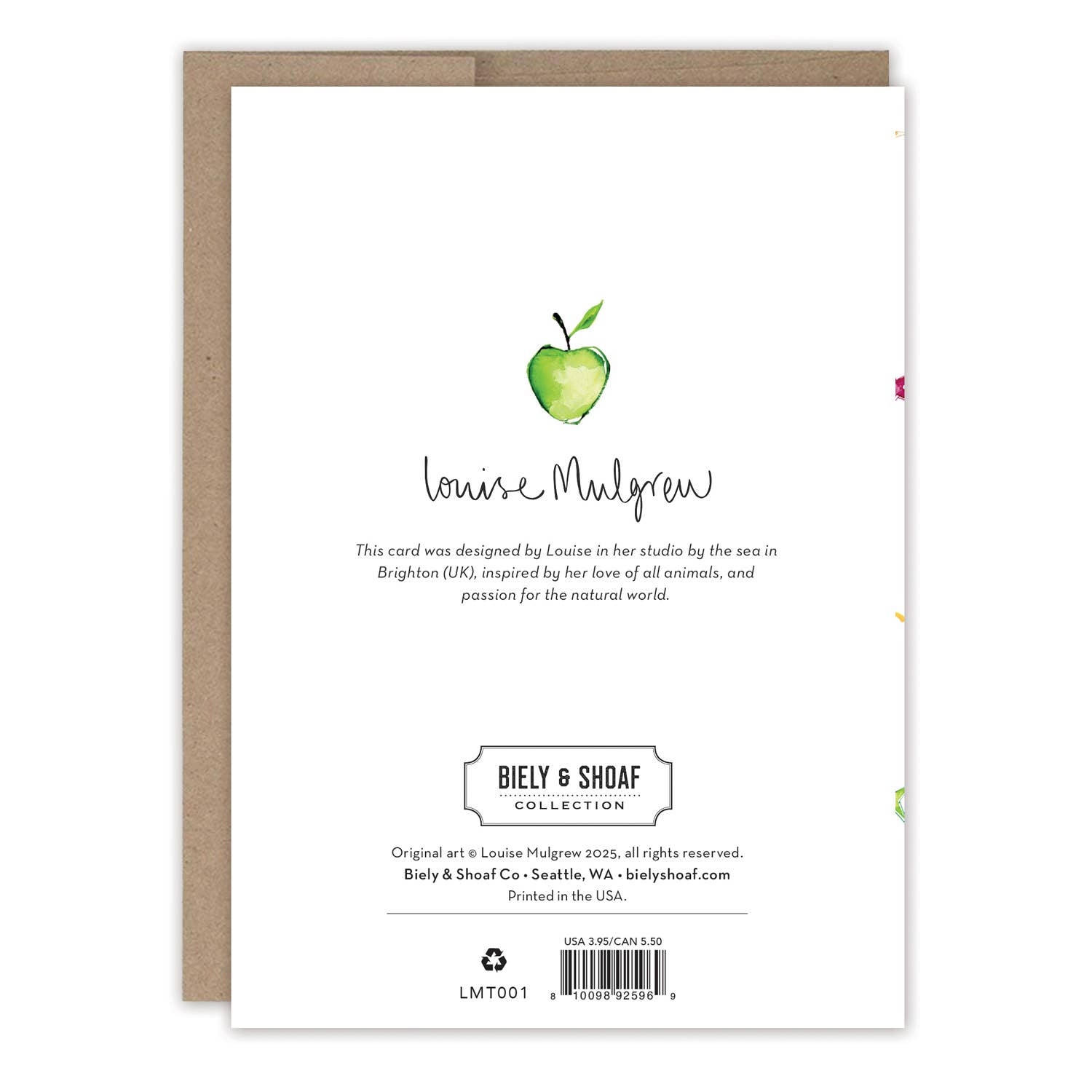 About the artist: Working with gouache and watercolor, Louise designs in her tiny studio in Brighton, England, inspired by her love of all animals, and passion for the natural world. Louise was named 2023 Artist of the Year by the USA Greeting Card Association.