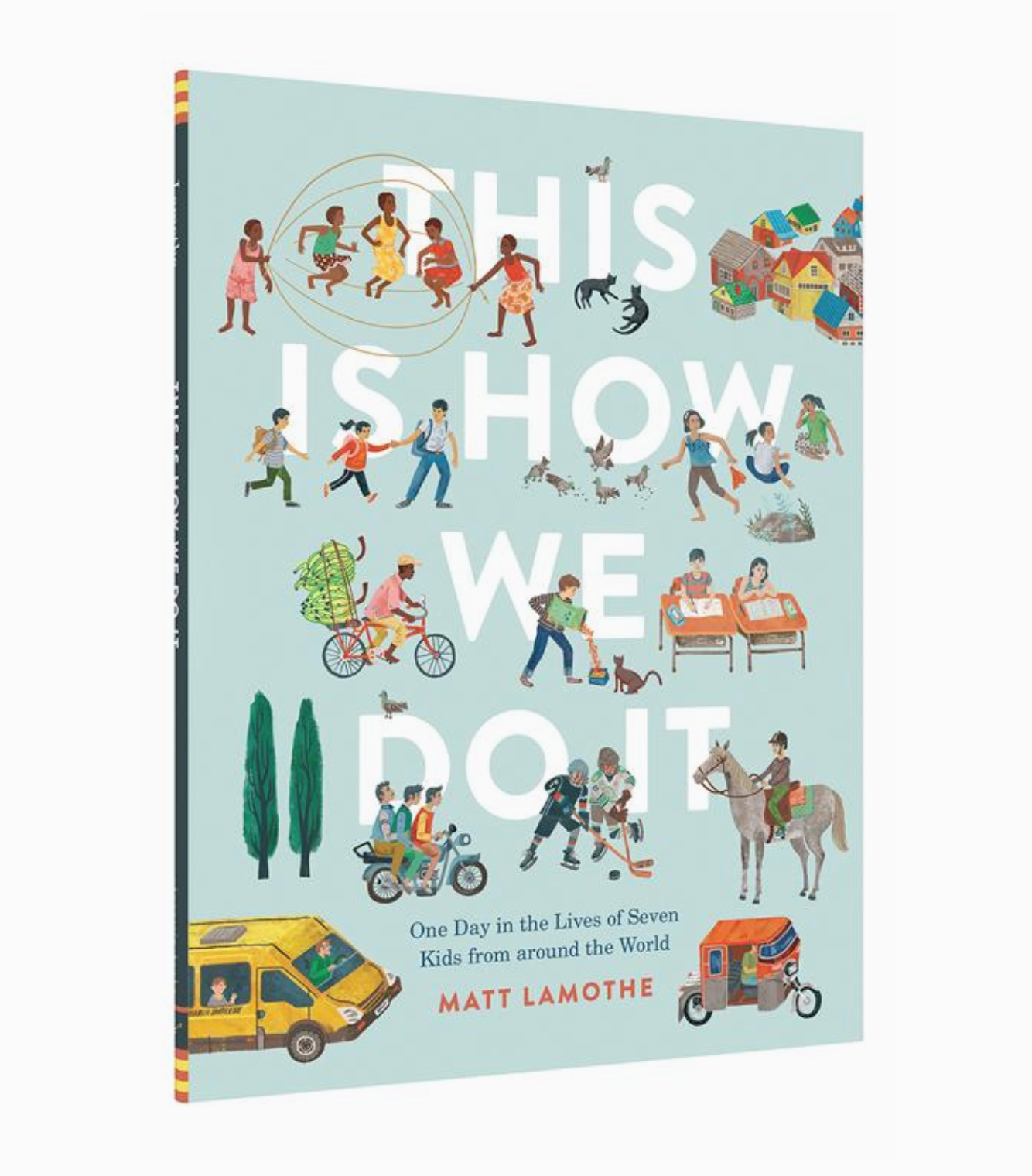 Follow one day in the real lives of seven kids from around the world—Italy, Japan, Iran, India, Peru, Uganda, and Russia! In Japan, Kei plays Freeze Tag, while in Uganda, Daphine likes to jump rope. While the way they play may differ, the shared rhythm of their days—and this one world we all share —unites them. This genuine exchange provides a window into traditions that may be different from our own as well as mirrors reflecting our common experiences. Inspired by his own travels, Matt Lamonthe transports readers across the globe and back with this luminous and thoughtful picture book.