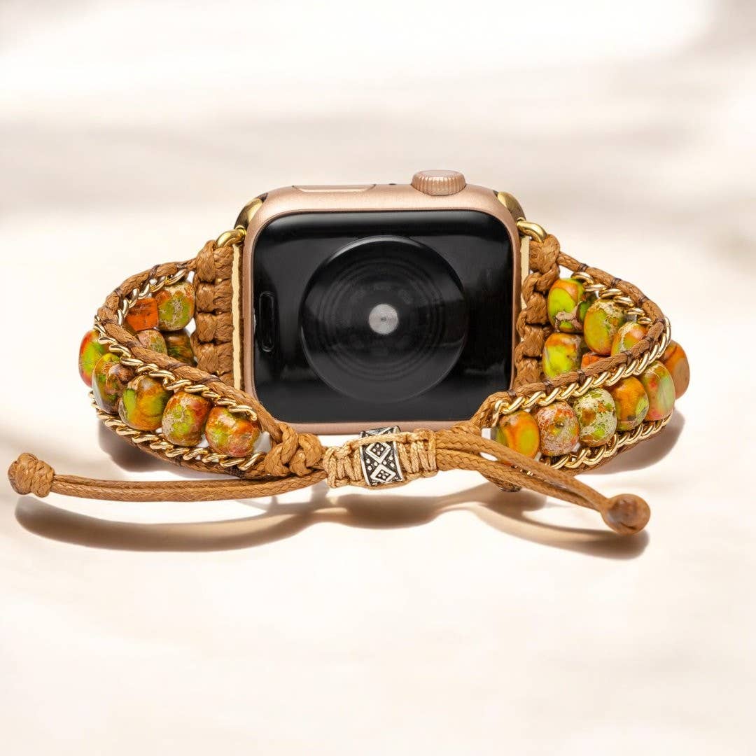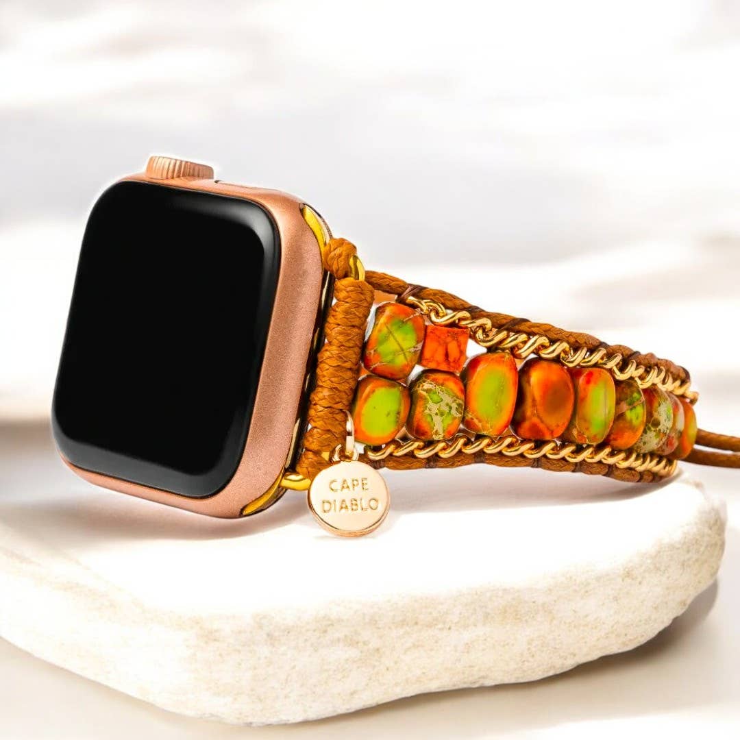 The Tropical Jasper Apple Watch Strap is a powerful spiritual ally, offering protection and tranquility. Known for reducing fear and uncertainty, it helps you find balance, stay organized, and embrace relaxation.