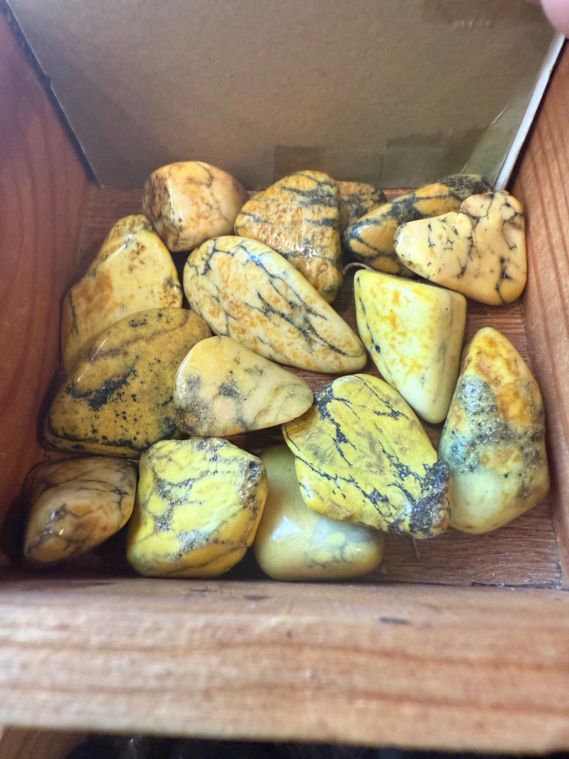 Bumblebee jasper is a strikingly banded, yellow, orange, and black stone found in Indonesia, known for its metaphysical properties including enhancing self-esteem, creativity, and motivation by activating the solar plexus and sacral chakras, and for its potential to relieve muscle tension and improve circulation.