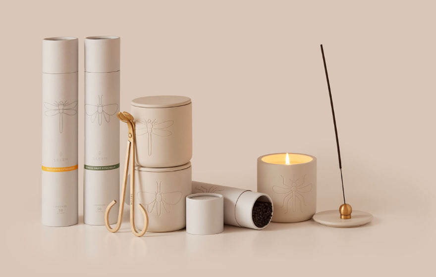 Made from the lemongrass plant, citronella is a natural insect repellent that keeps biting bugs at bay. Our Modern Citronella collection embraces organic simplicity, blending citronella oils with earth-inspired fragrances that amplify the outdoor experience. Minimal in design, smooth concrete vessels and subtly debossed motifs exemplify a contemporary style, remaining elevated yet understated. Our Modern Citronella incense feature packaging in a matching gray tone, with outdoor incense sticks that burn for up to one hour each.