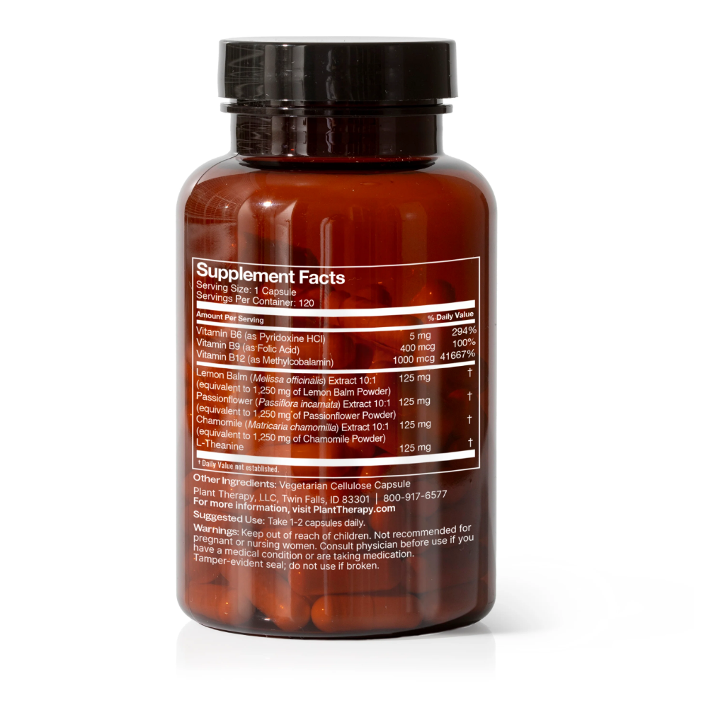 Is busy brain bringing you down? Did a chaotic day wind you up a bit too tight? Let our Unwind Your Mind capsules help smooth out the sharp edges of your bustling day. With the ultra-calming botanicals of Lemon Balm, Passionflower, and Chamomile, alongside a fortifying blend of B vitamins and L-Theanine, this supplement will help enhance your mind's natural rhythms of relaxation and renewal. Simple and straightforward, these capsules are your gentle nudge towards a more serene state. Take a pause, enjoy the now, and allow yourself to unwind effortlessly.