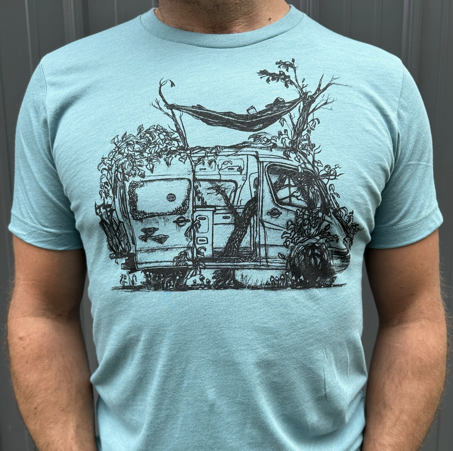 Introducing the Going, going, Vanagone! - the perfect addition to your wardrobe! This hand drawn screen print features a sleek van design and is proudly made in the USA. Don't miss out on this one of a kind piece. VW Lovers unite!
