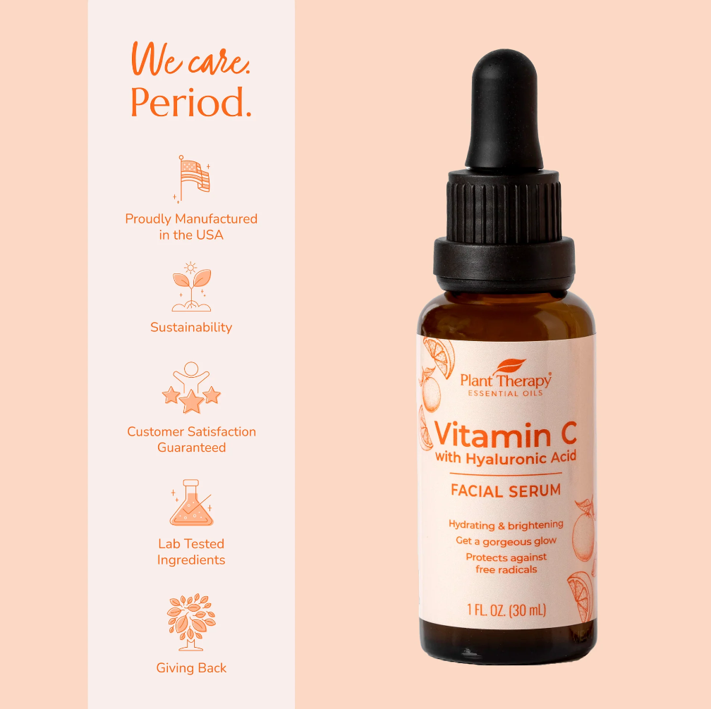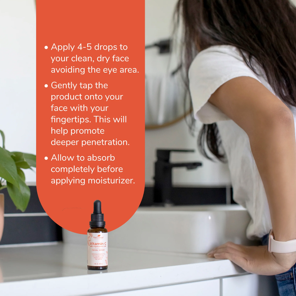 Treat yourself to a gorgeous glow with our Vitamin C with Hyaluronic Acid Facial Serum. Vitamin C has a number of wonderful benefits for your skin. It can help reduce the effects of sunburn and photoaging from exposure to UV rays. This serum, with the added benefits of hyaluronic acid, also helps promote an even, smooth complexion and helps with the appearance of fine lines and wrinkles. This luxurious serum helps keep your skin moisturized and radiant.