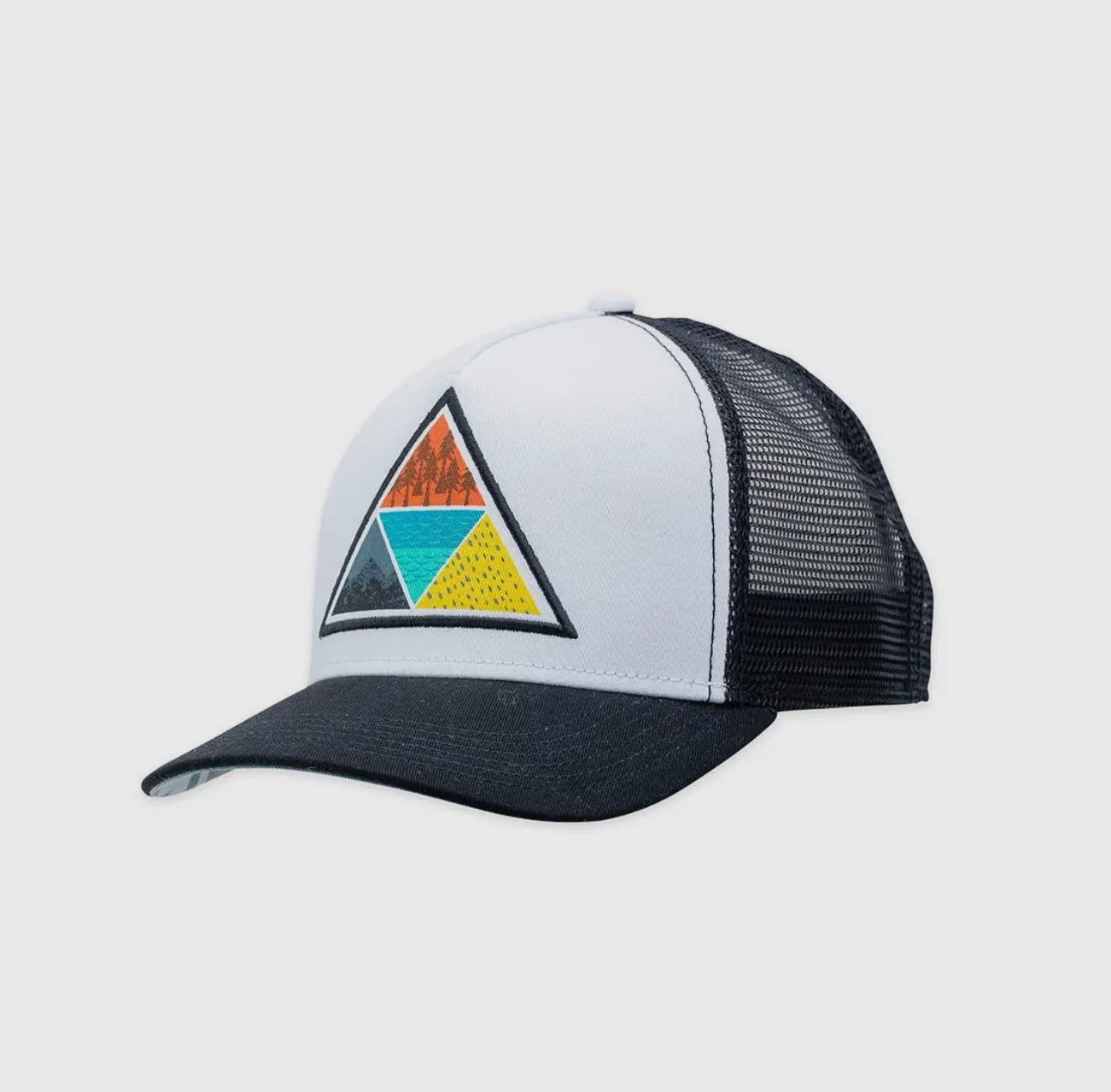 Pistil people love the wilderness. The Vortex hat has a bold graphic look inspired by the great outdoors. This men's trucker hat combines a front patch detail with a pop of pattern on the underbrim. Contrast stitching completes the look.