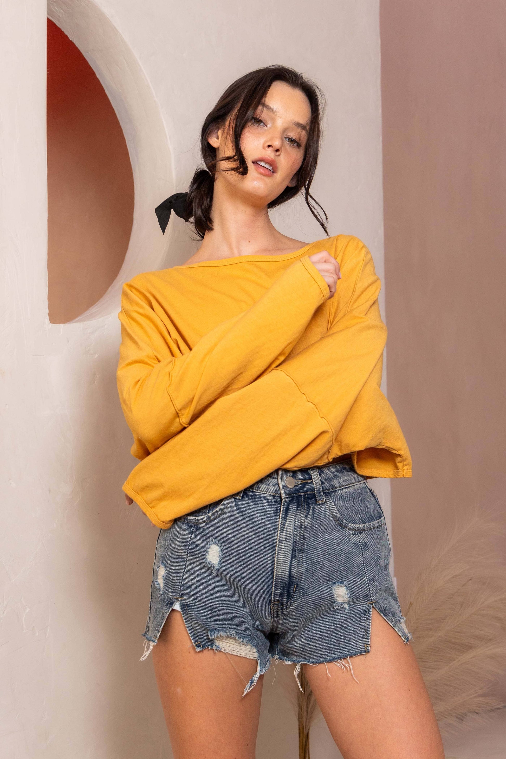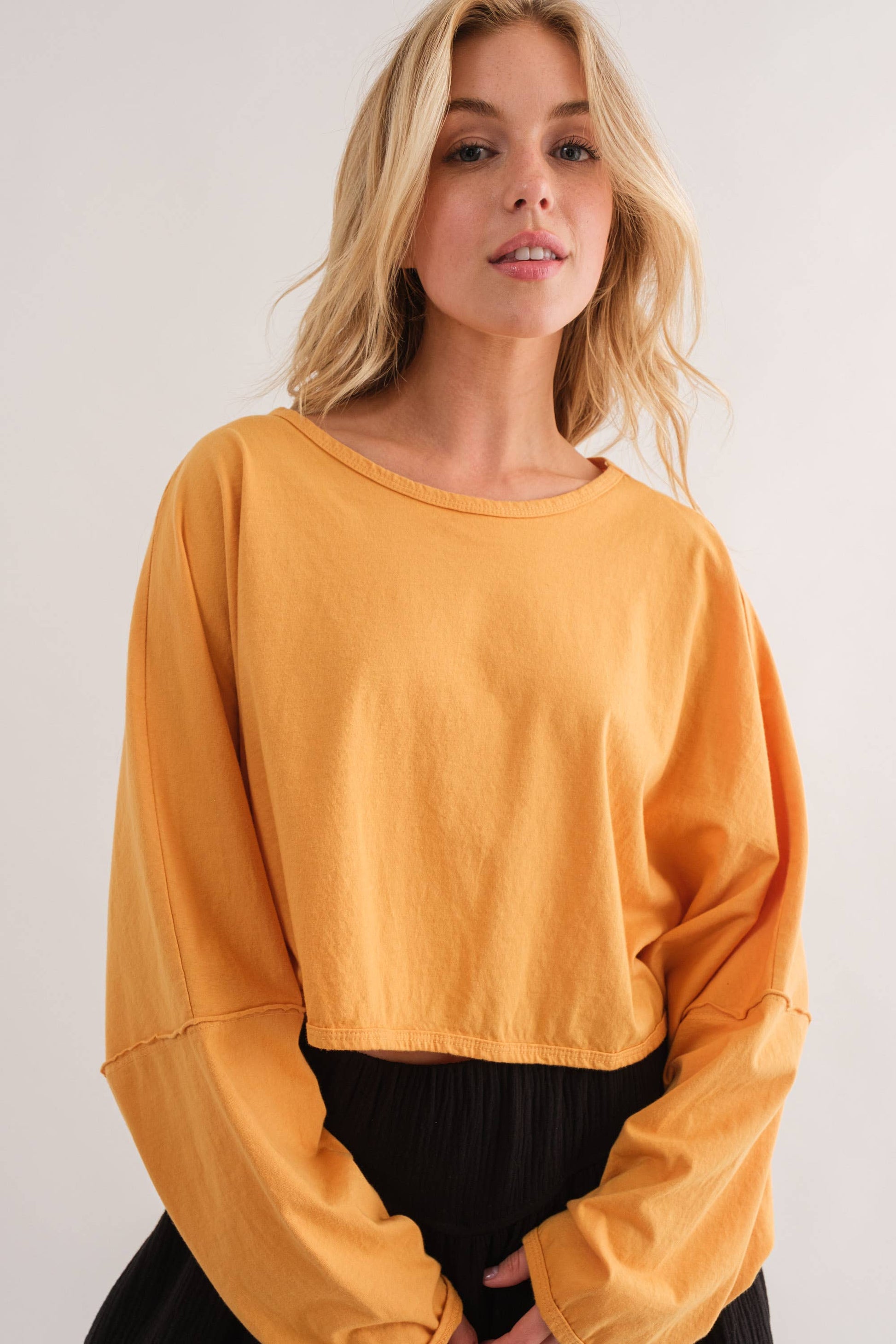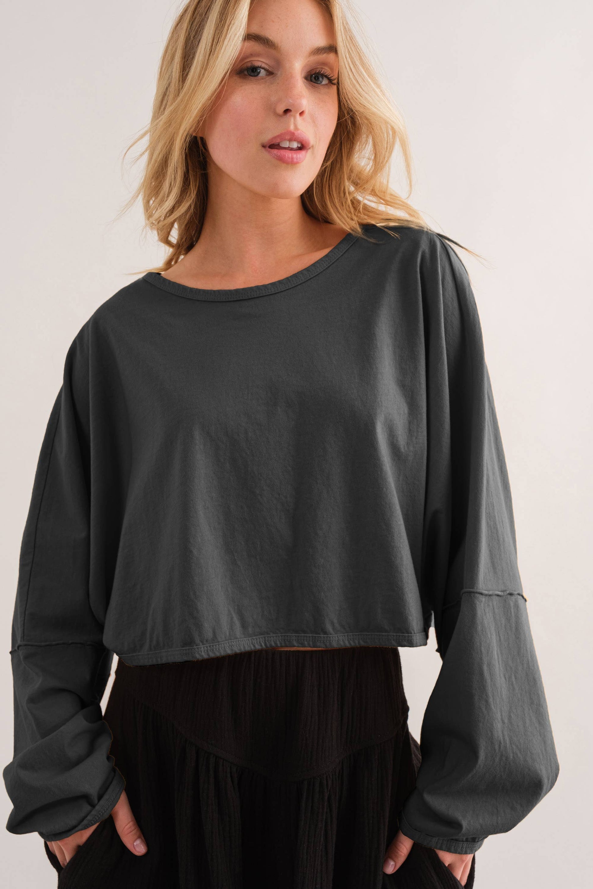 Washed Relaxed Fit Drop Shoulder Crop Top