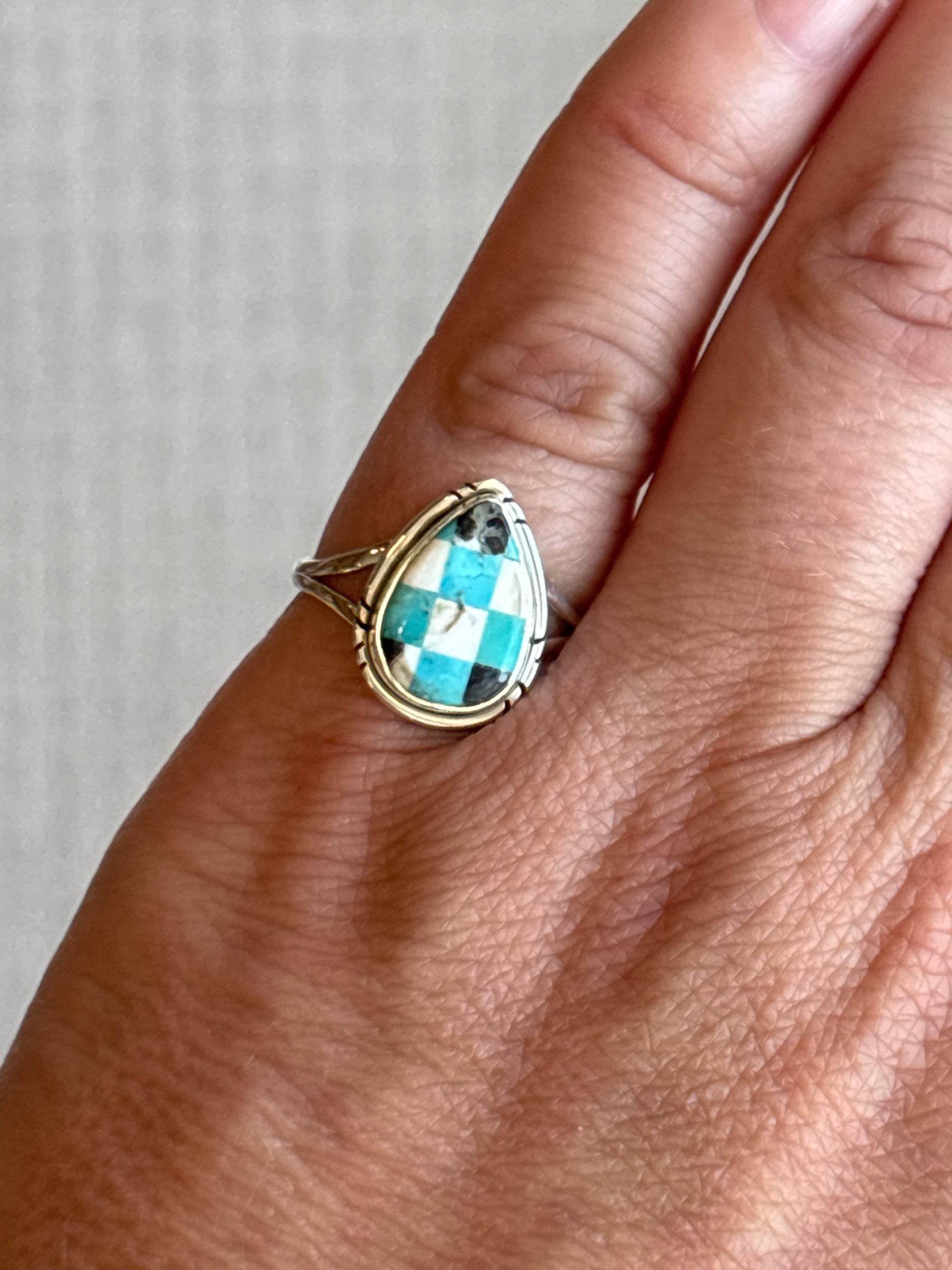White Buffalo Turquoise Mosaic Ring | Size 7