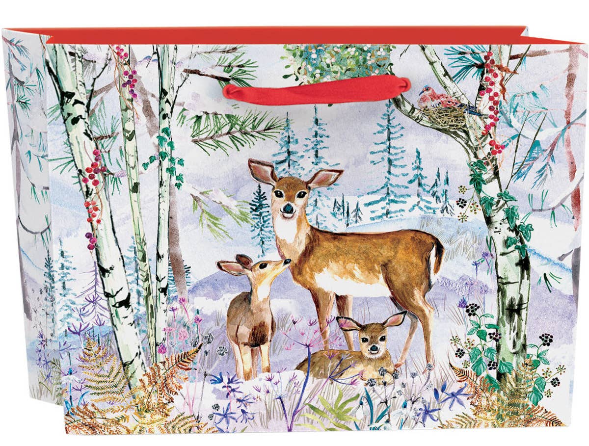 The perfect presentation for gorgeous gifts! Beautifully illustrated gift bags printed on recyclable, un-laminated paper stock. Each gift bag features a die-cut tag and matching grosgrain ribbon handles. Matching cards and stationery available. This Large Landscape Gift Bag features artwork by Fay Ford; Product Details: 200gsm FSC® certified kraft paper; Base Strengthened with 300gsm FSC® certified greyboard. Unlaminated. Recyclable with other paper and card. Comes with gift tag