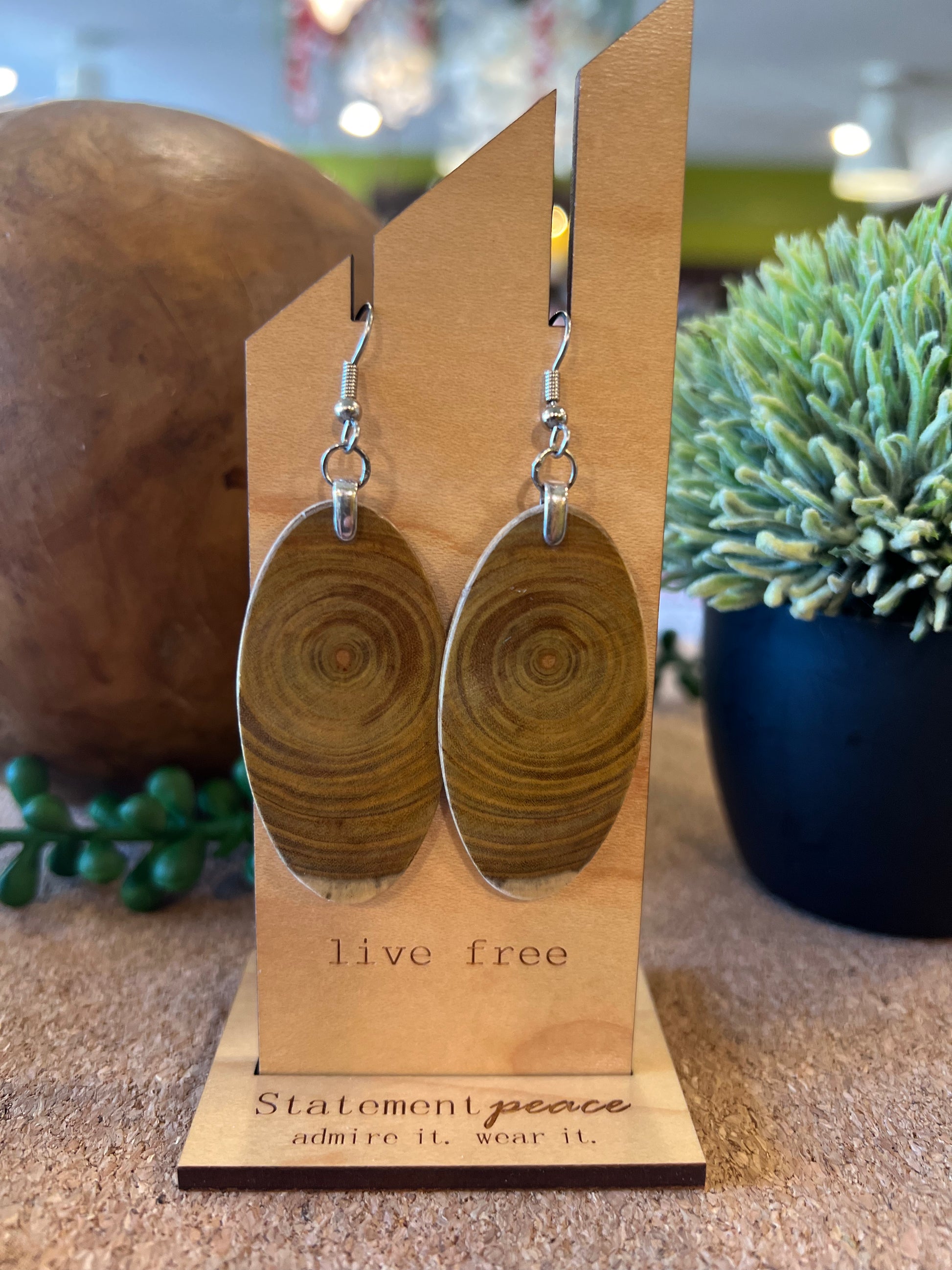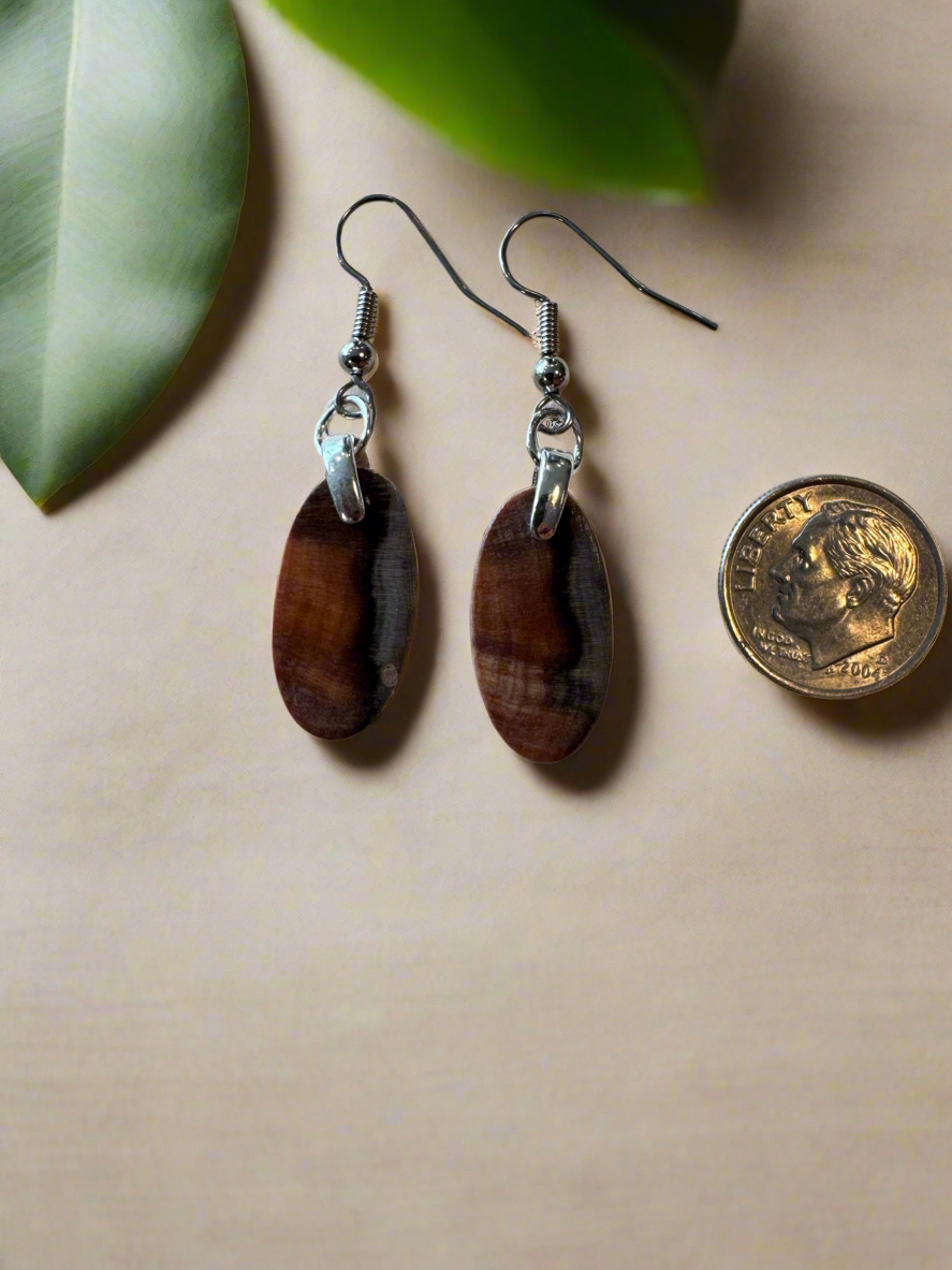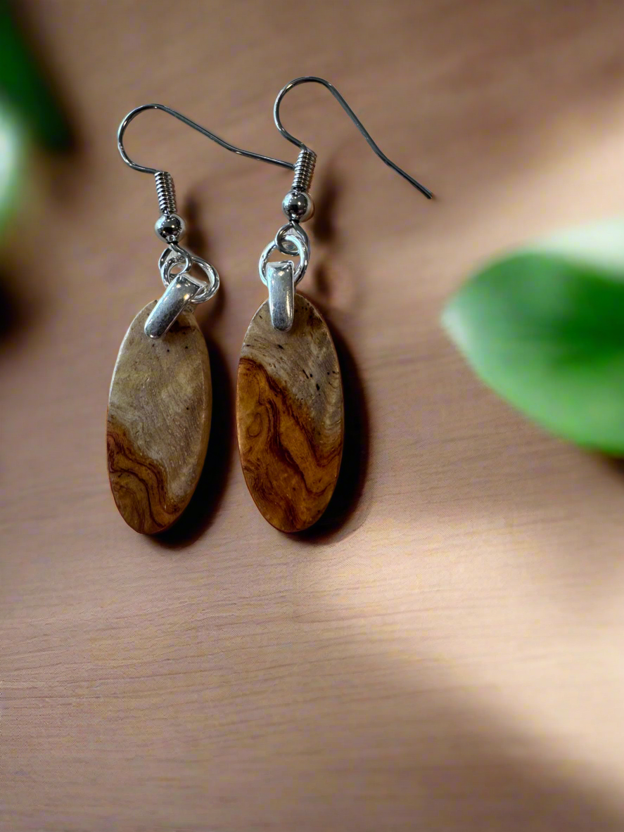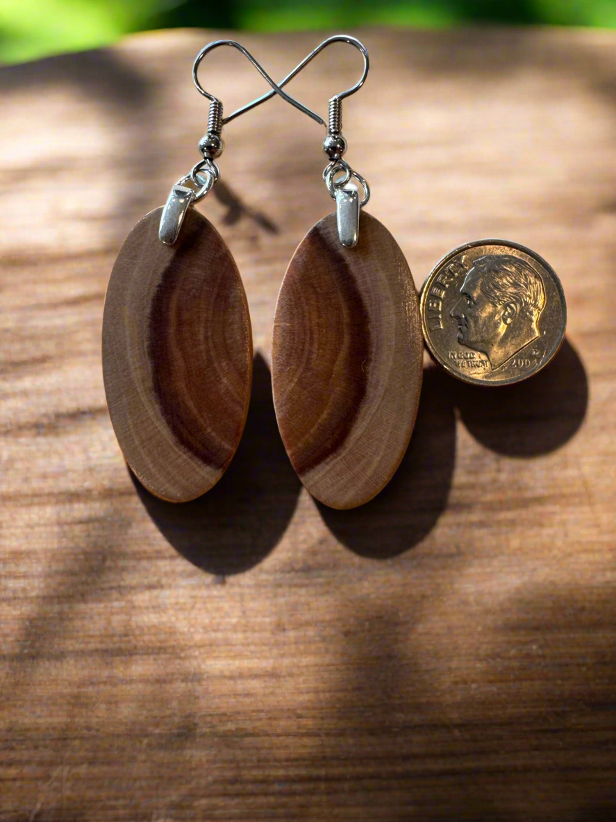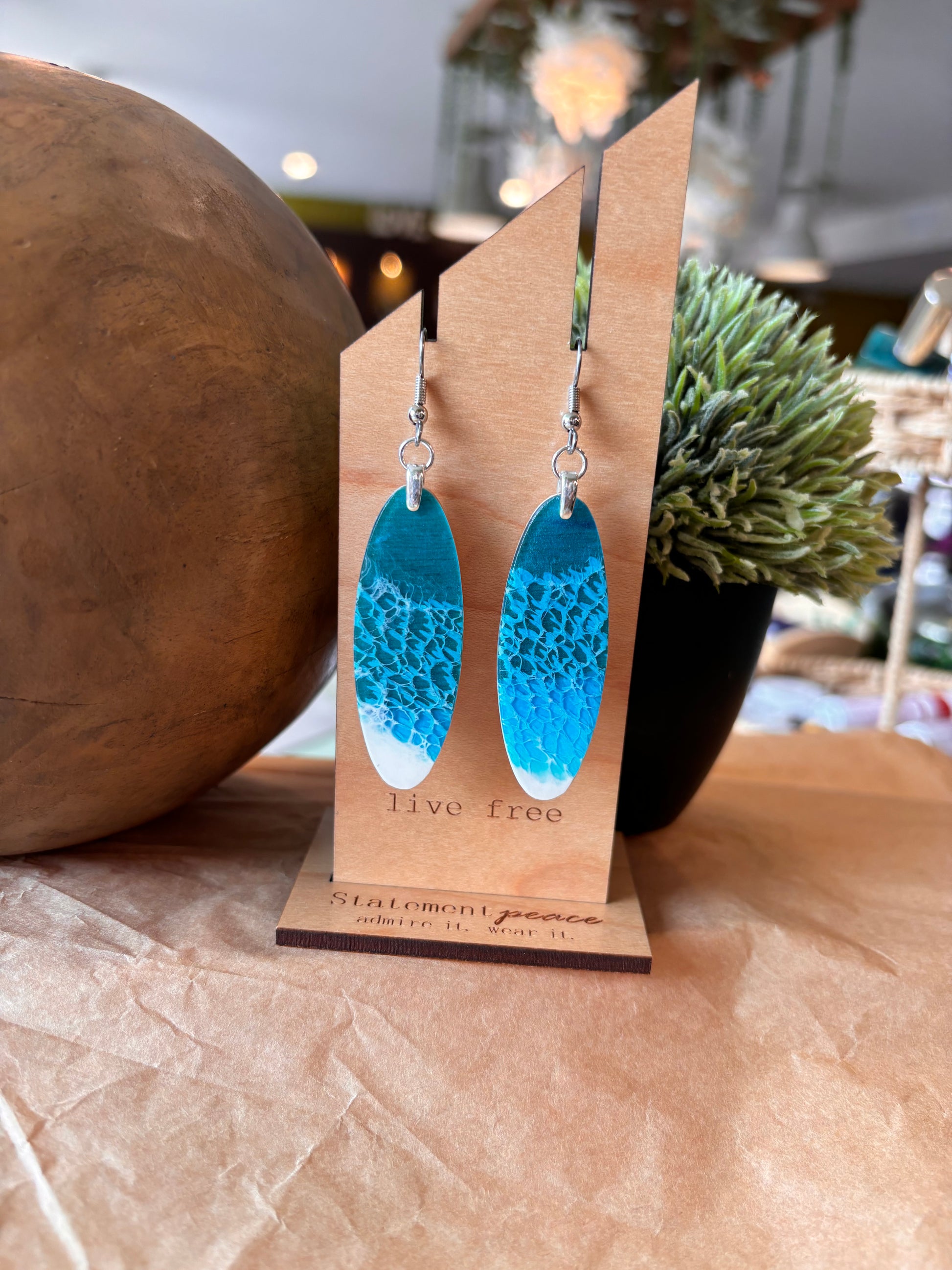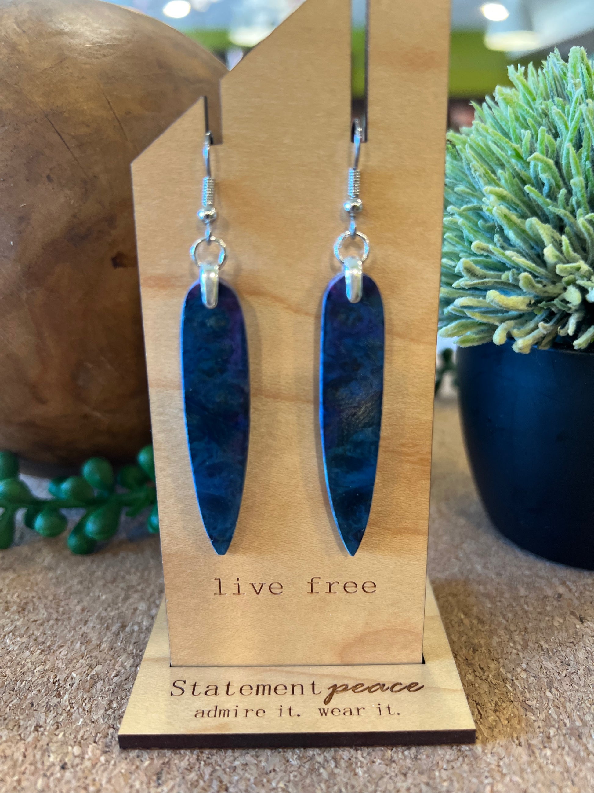 Custom KEPS exclusive! These earrings are incredibly beautiful and made from wood, resin, infused woods and many unique finds. They have sterling silver findings and surgical stainless steel hypoallergenic ear wires.