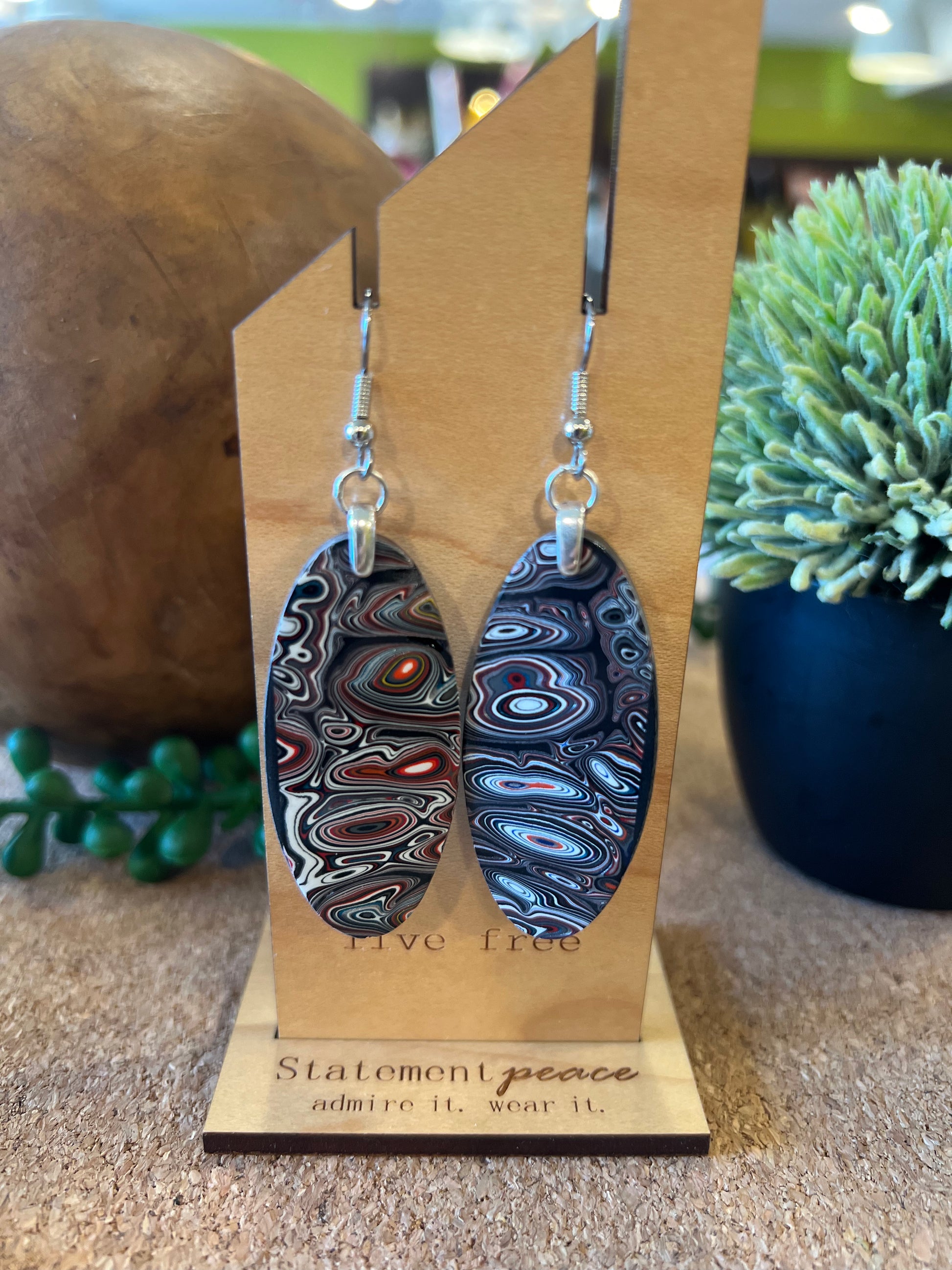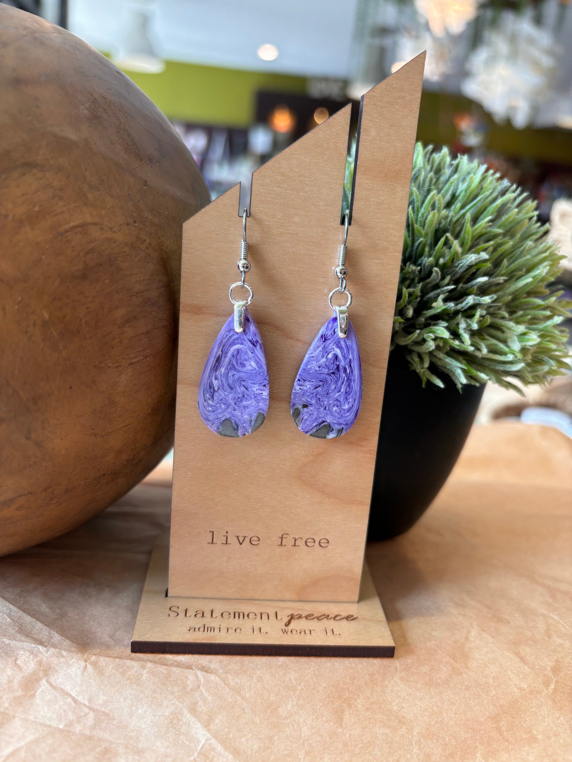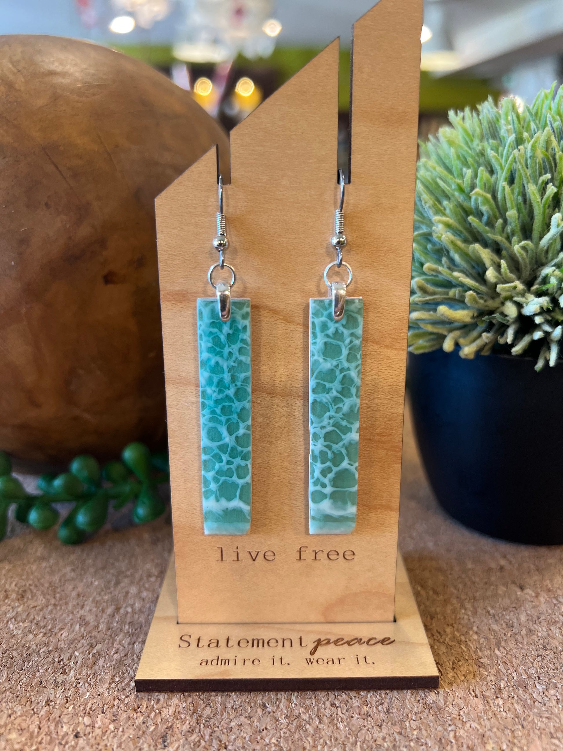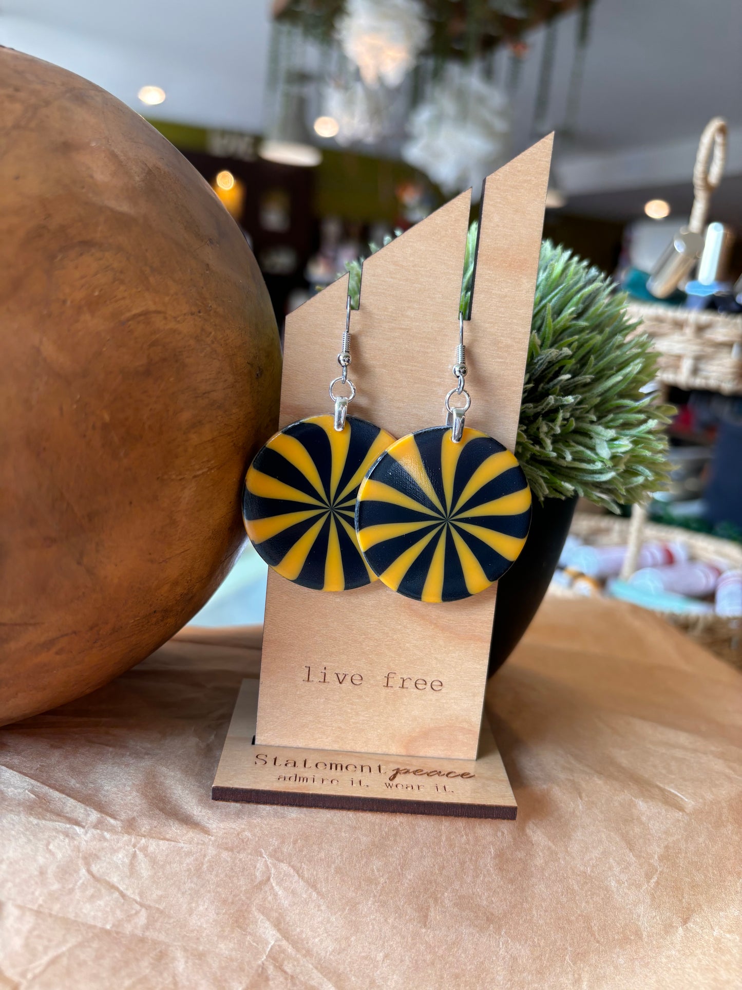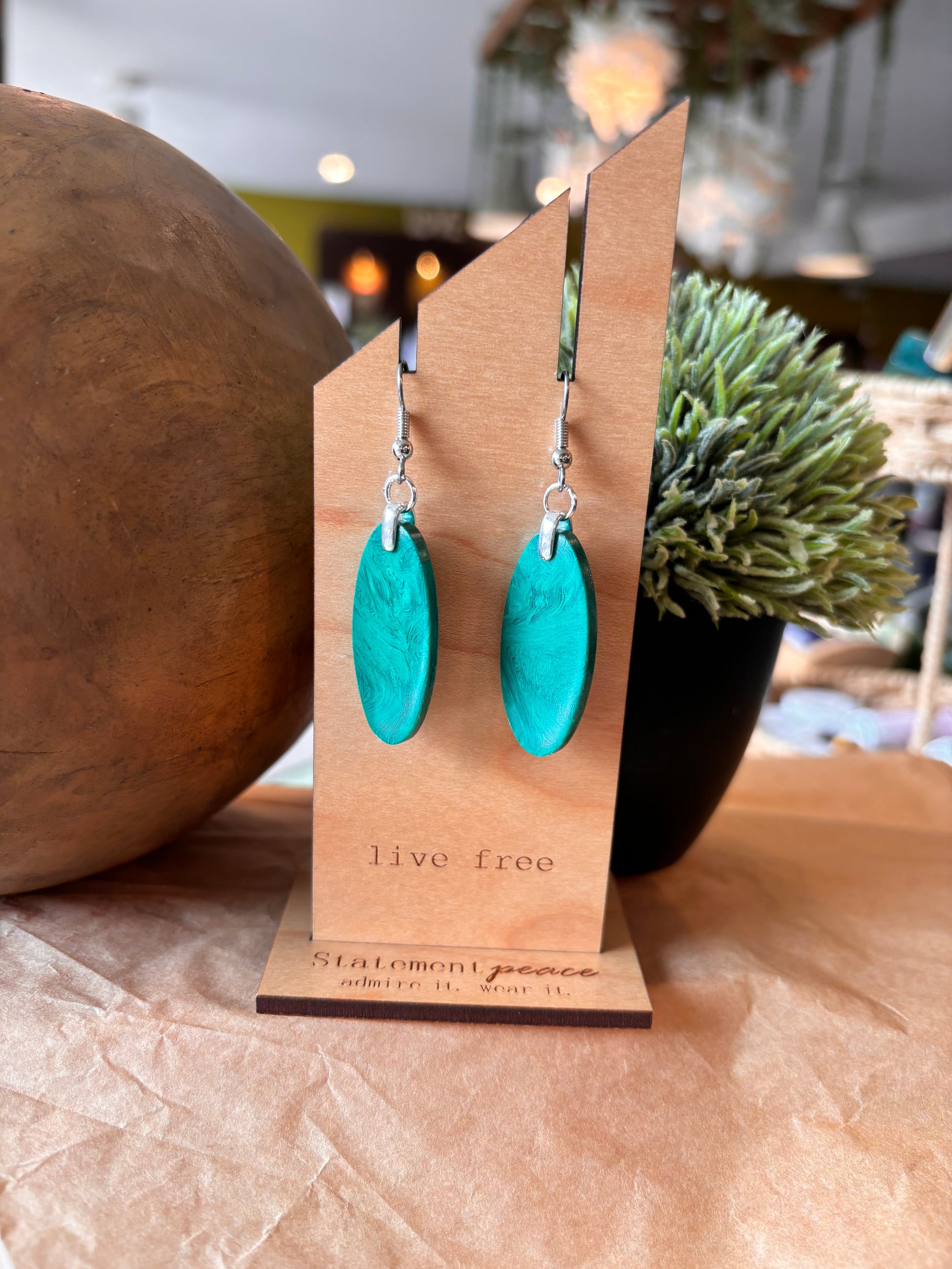 Custom KEPS exclusive! These earrings are incredibly beautiful and made from wood, resin, infused woods and many unique finds. They have sterling silver findings and surgical stainless steel hypoallergenic ear wires.
