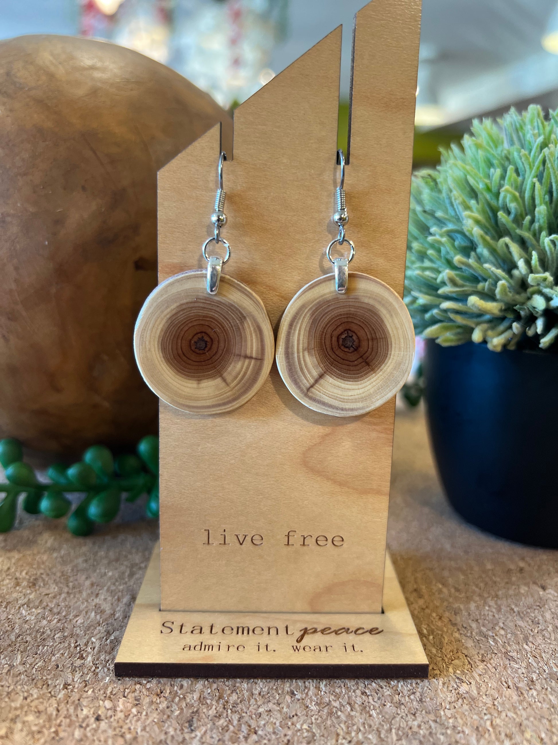 Custom KEPS exclusive! These earrings are incredibly beautiful and made from wood, resin, infused woods and many unique finds. They have sterling silver findings and surgical stainless steel hypoallergenic ear wires.