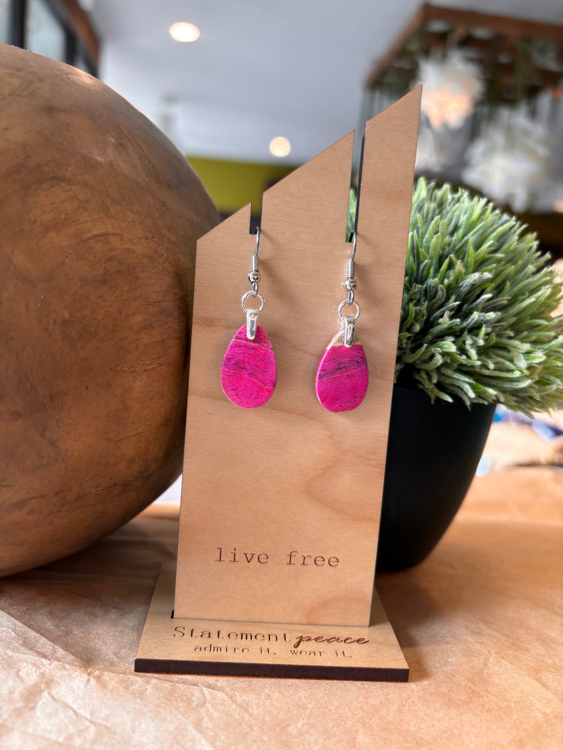 Custom KEPS exclusive! These earrings are incredibly beautiful and made from wood, resin, infused woods and many unique finds. They have sterling silver findings and surgical stainless steel hypoallergenic ear wires.