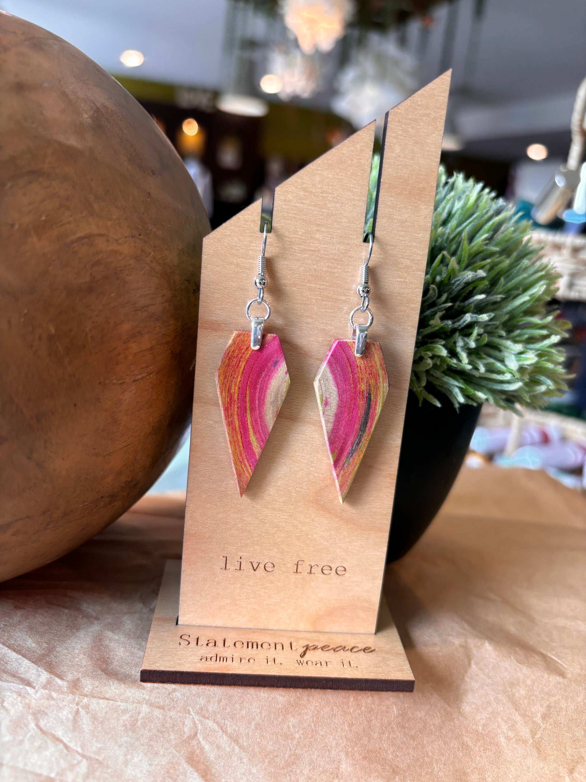 Custom KEPS exclusive! These earrings are incredibly beautiful and made from wood, resin, infused woods and many unique finds. They have sterling silver findings and surgical stainless steel hypoallergenic ear wires.