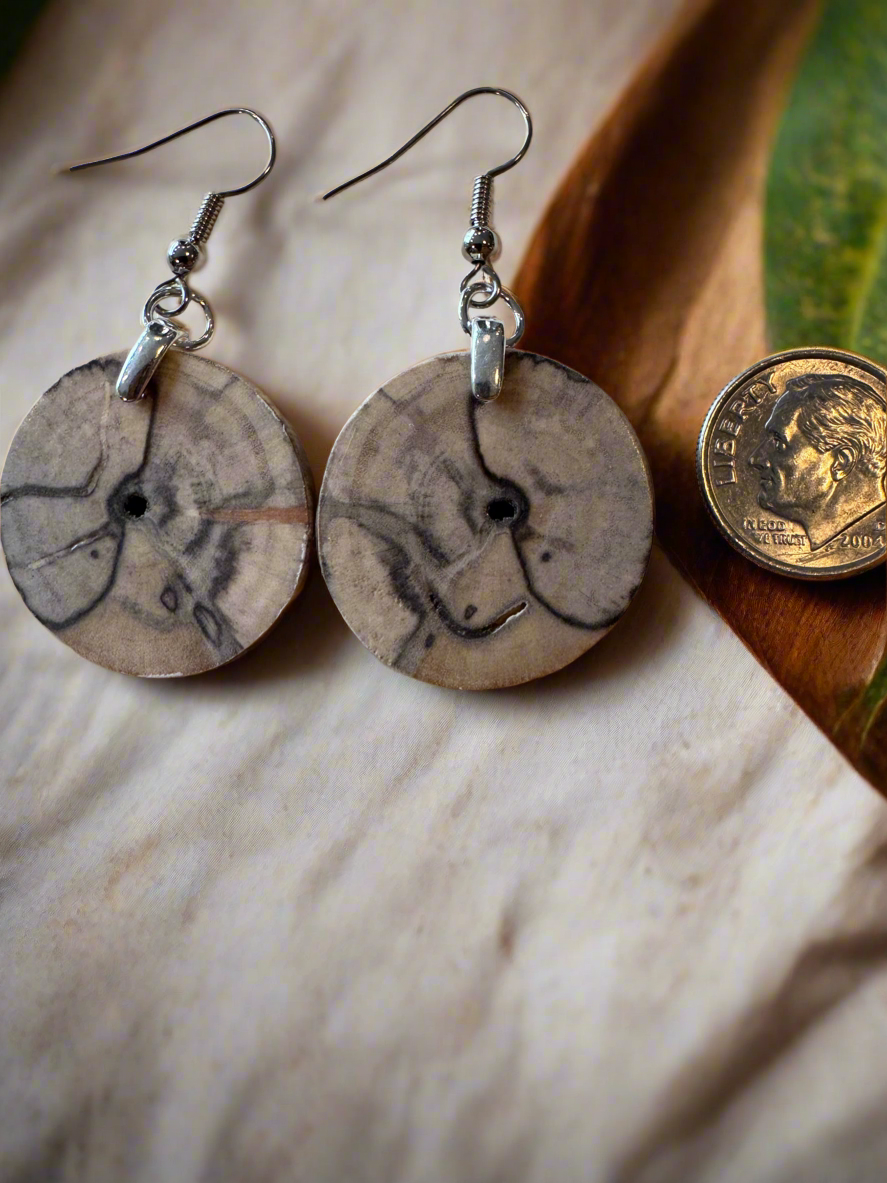 Custom KEPS exclusive! These earrings are incredibly beautiful and made from wood, resin, infused woods and many unique finds. They have sterling silver findings and surgical stainless steel hypoallergenic ear wires.